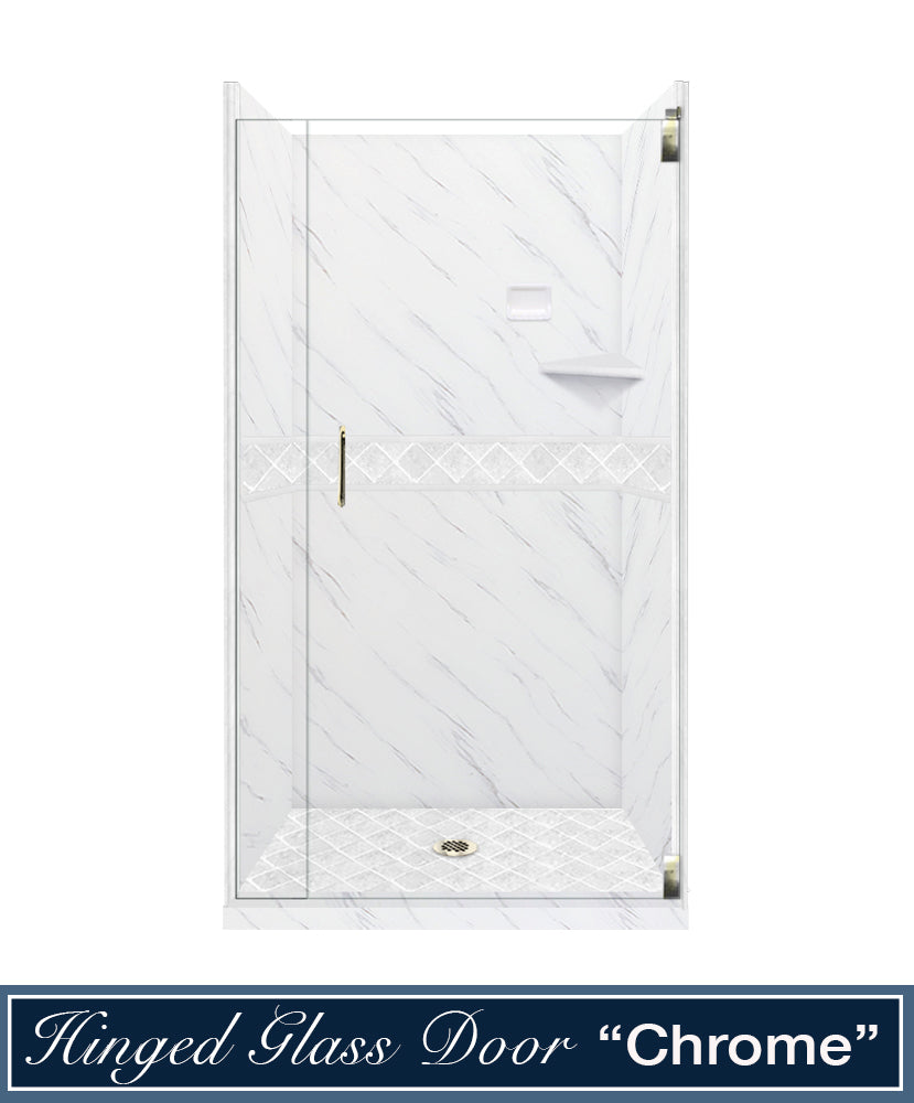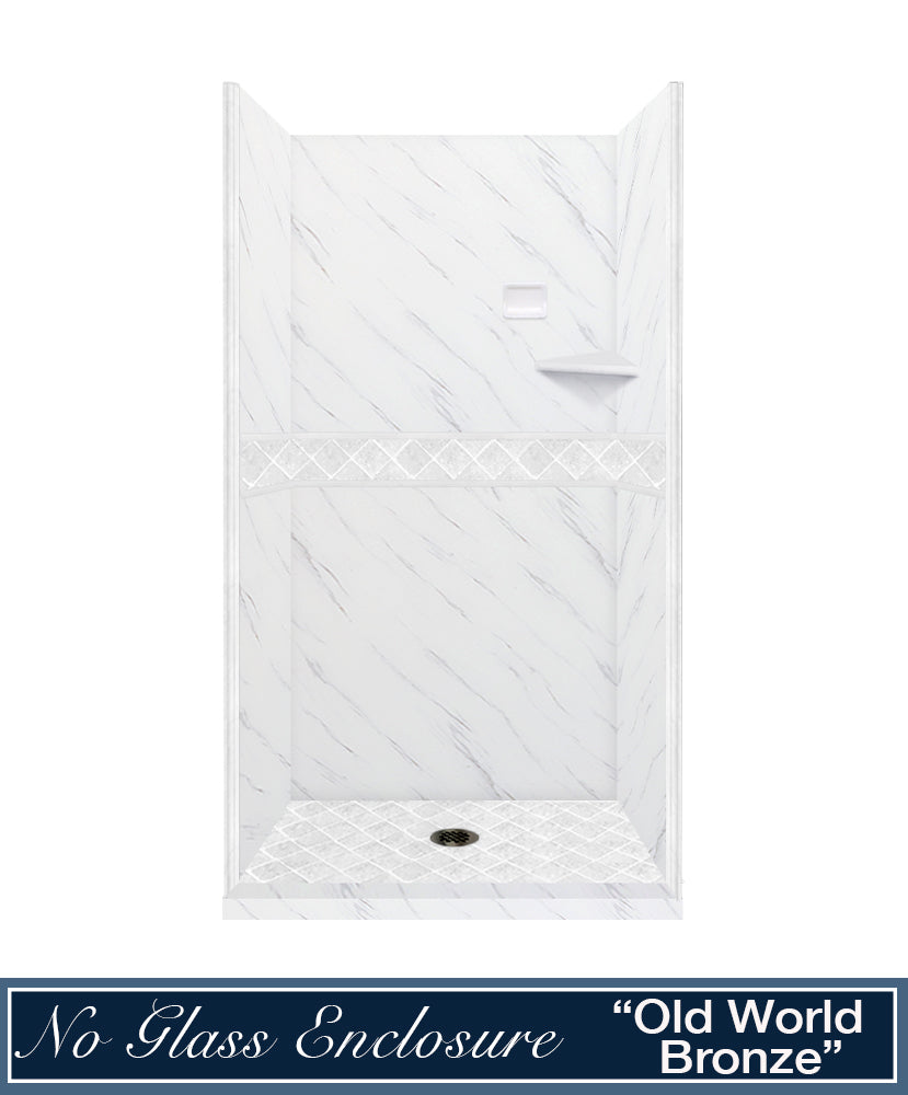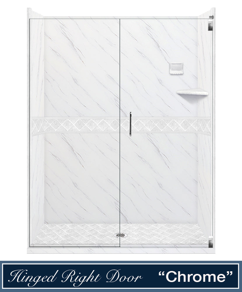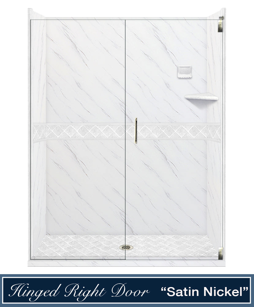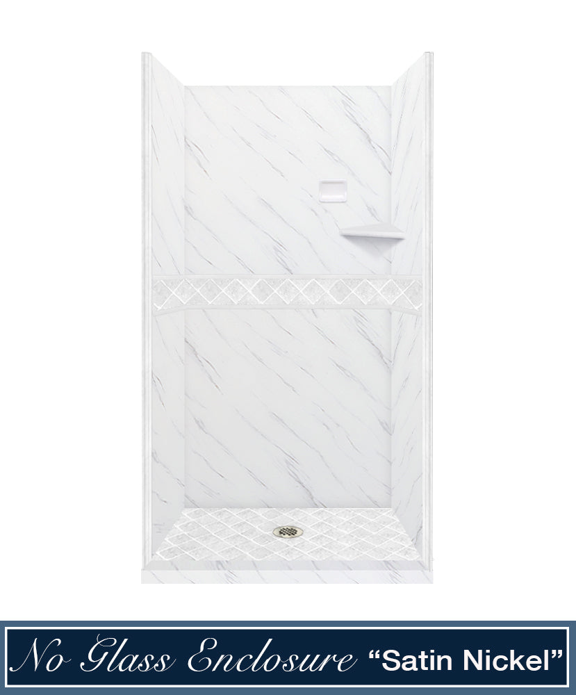 60" Alcove Carrara Medici Marble & Diamond Stone Accent Shower Remodel Kit
