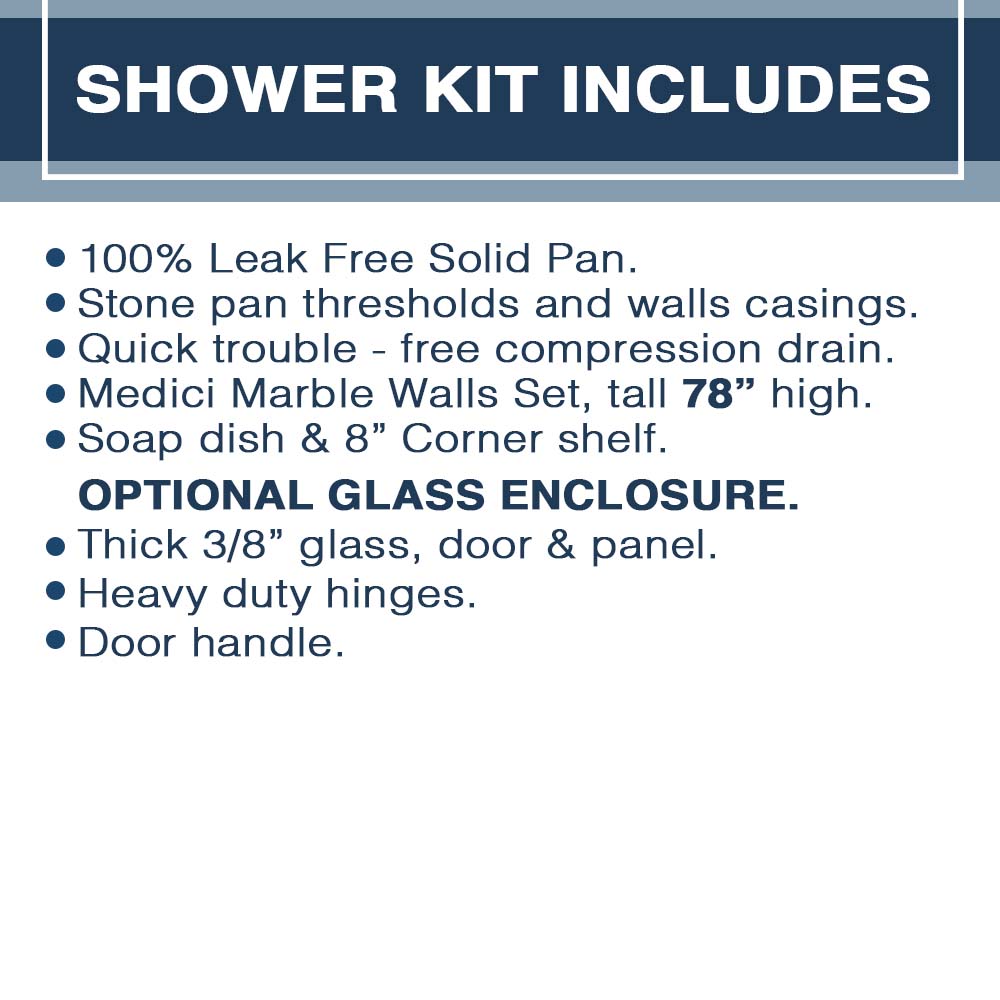 - Stone Shower Pan, Thresholds and Walls Casings.