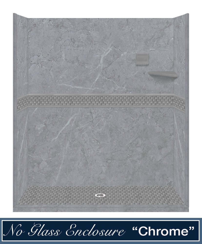 60" Alcove Grio Medici Marble & Jewel Stone Accent Shower Remodel Kit