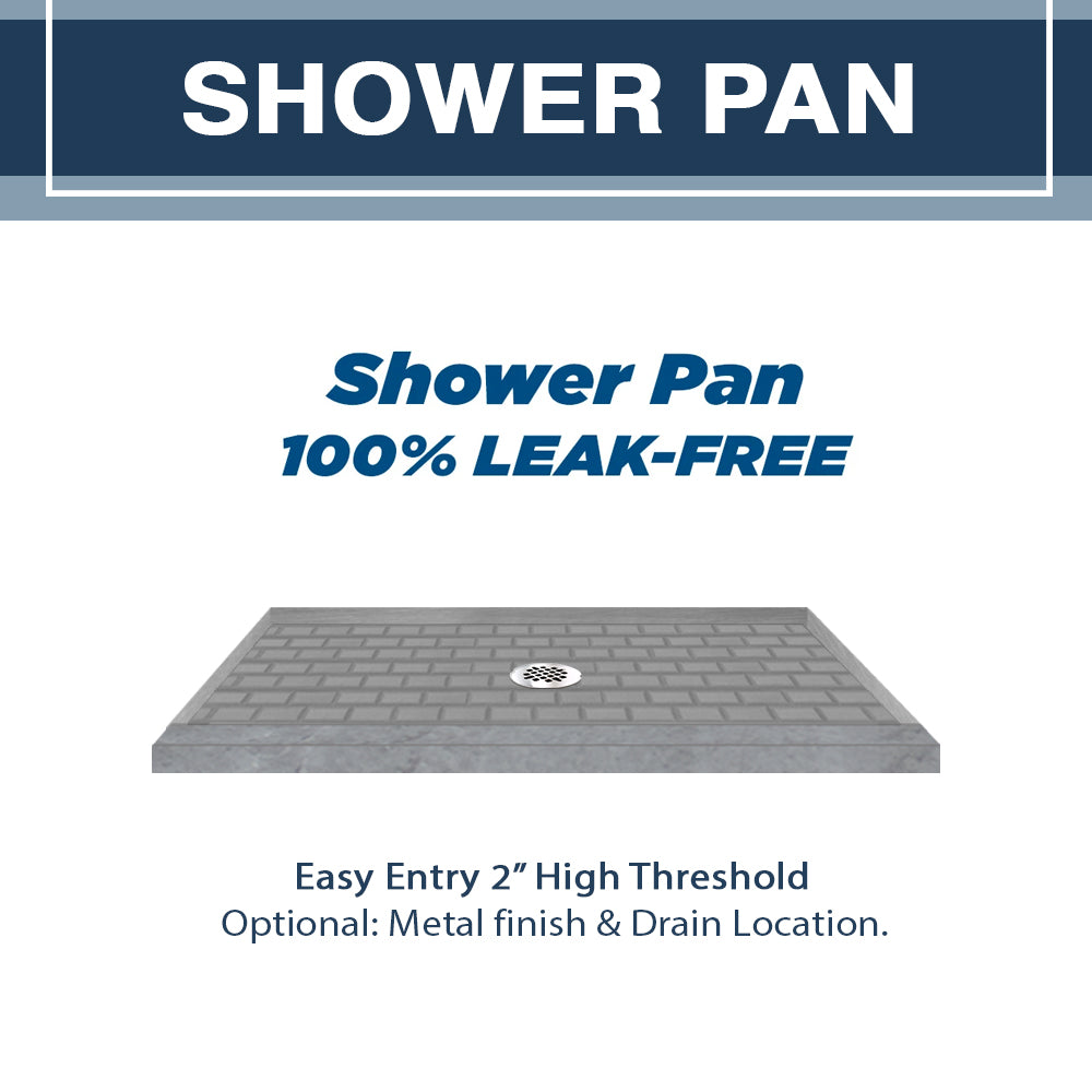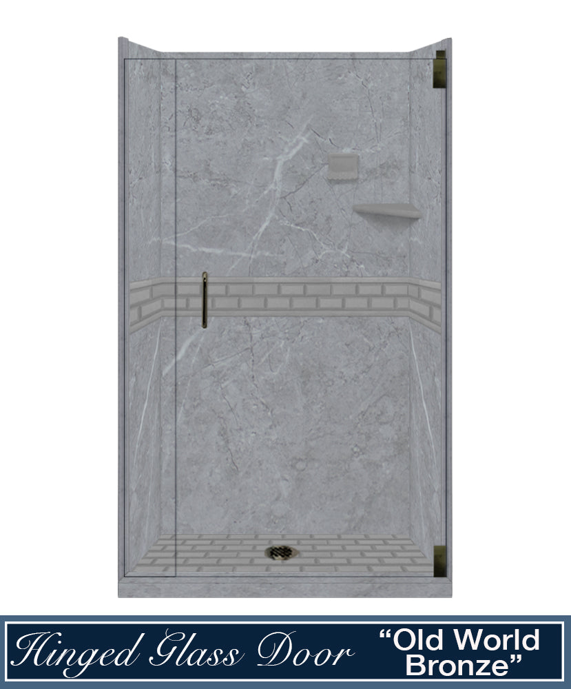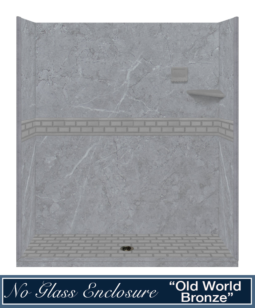 60" Alcove Grio Medici Marble & Subway Stone Accent Shower Remodel Kit