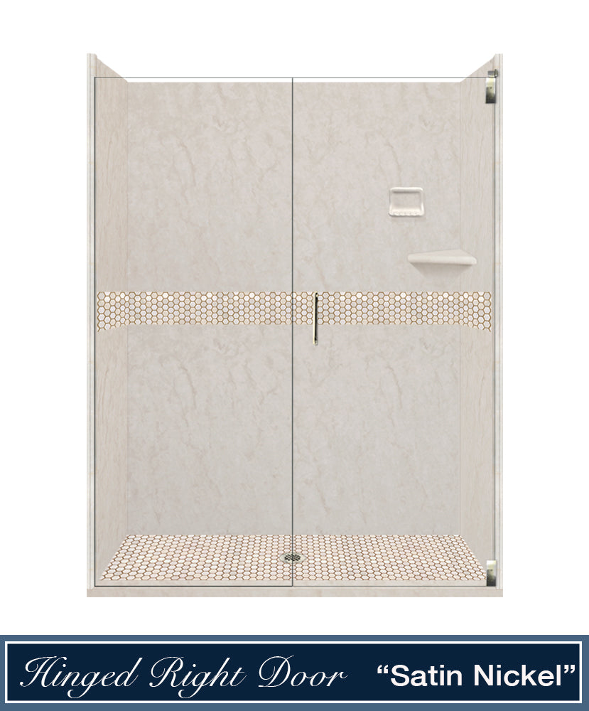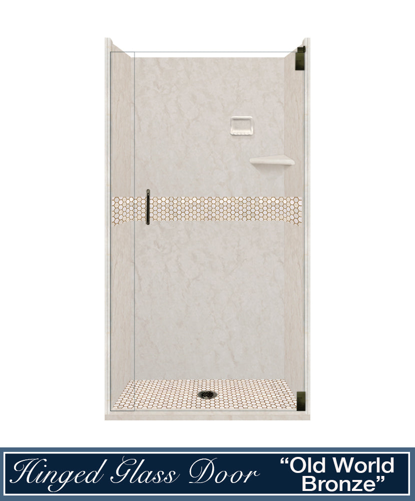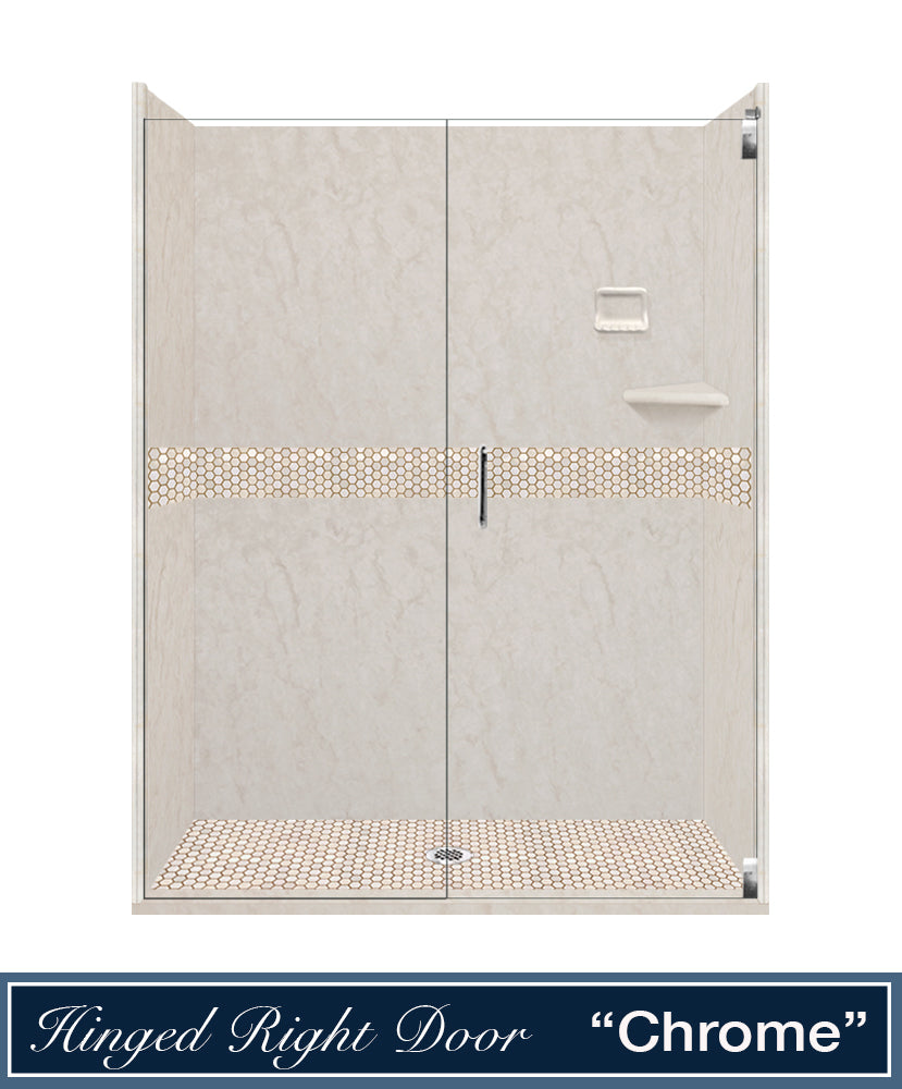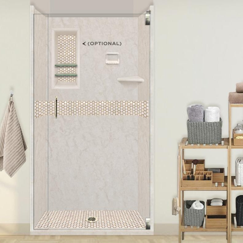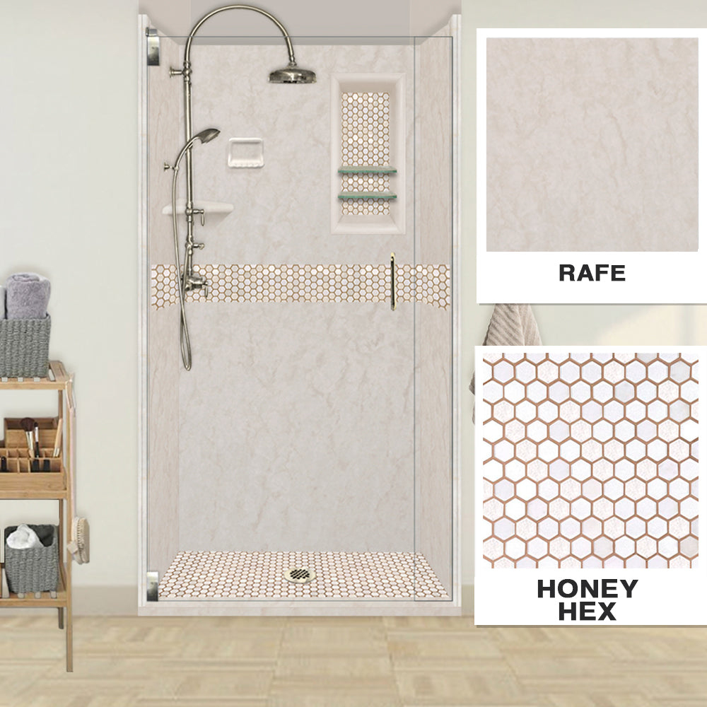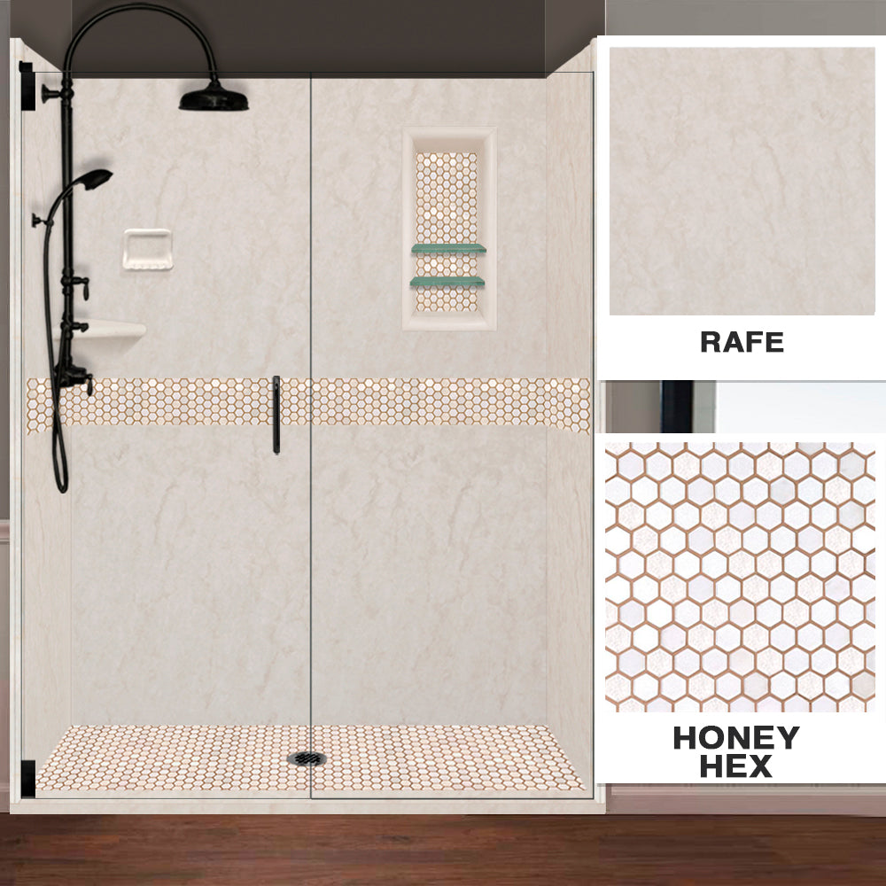 60" Alcove Rafe Medici Marble & Honey Hex Mosaic Accent Shower Remodel Kit