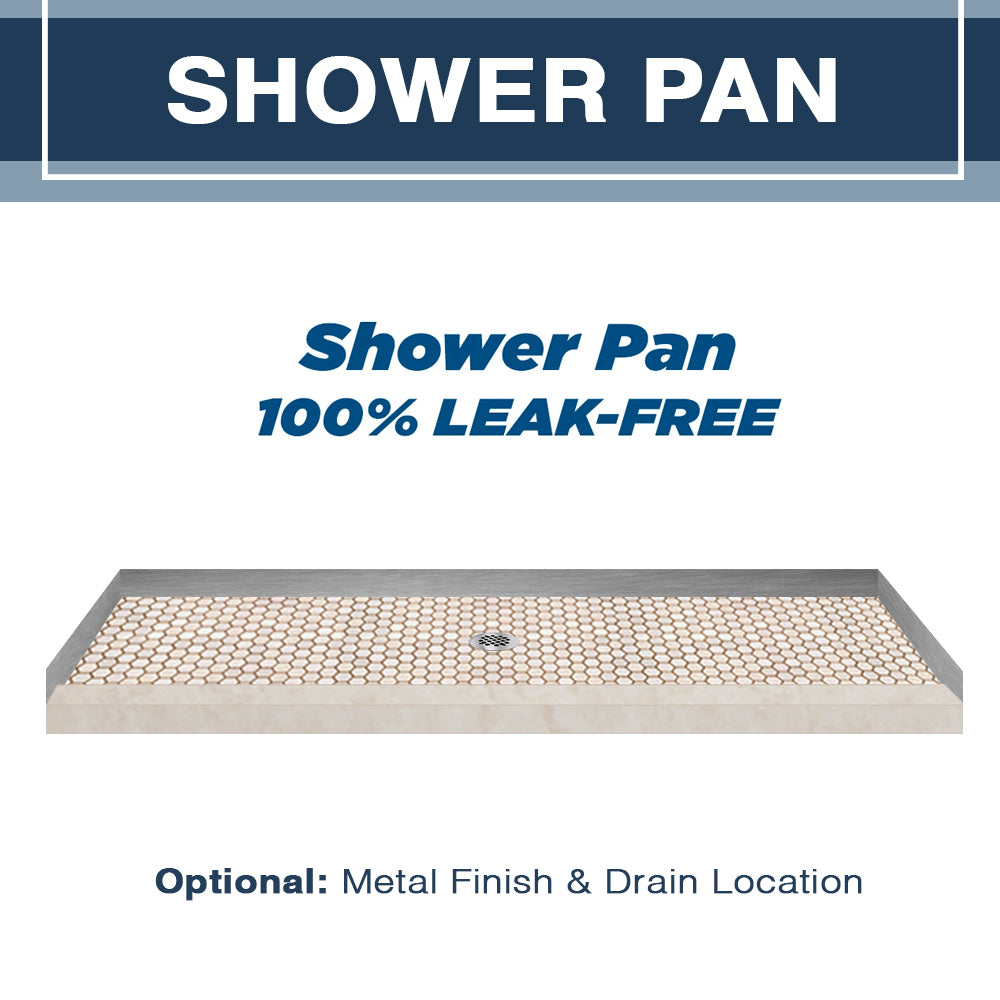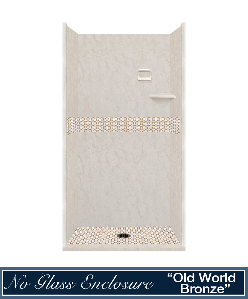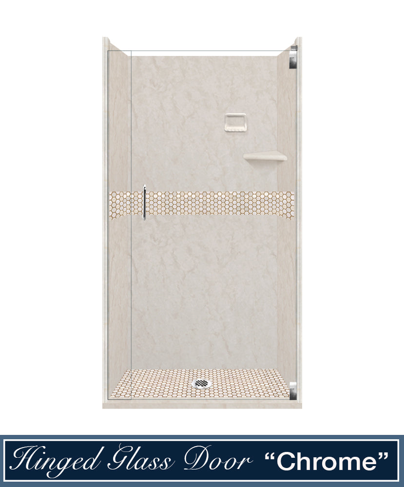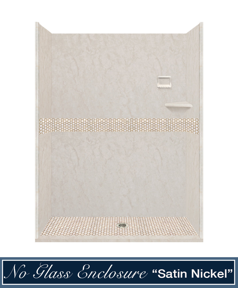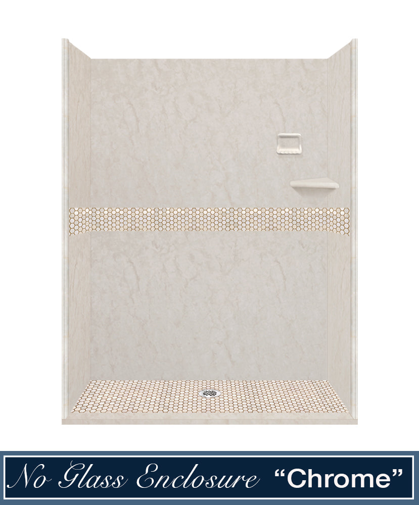 60" Alcove Rafe Medici Marble & Honey Hex Mosaic Accent Shower Remodel Kit