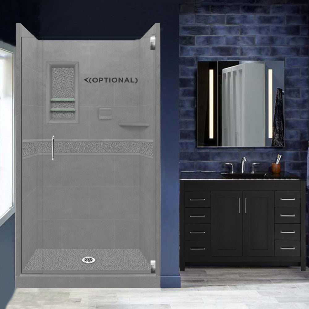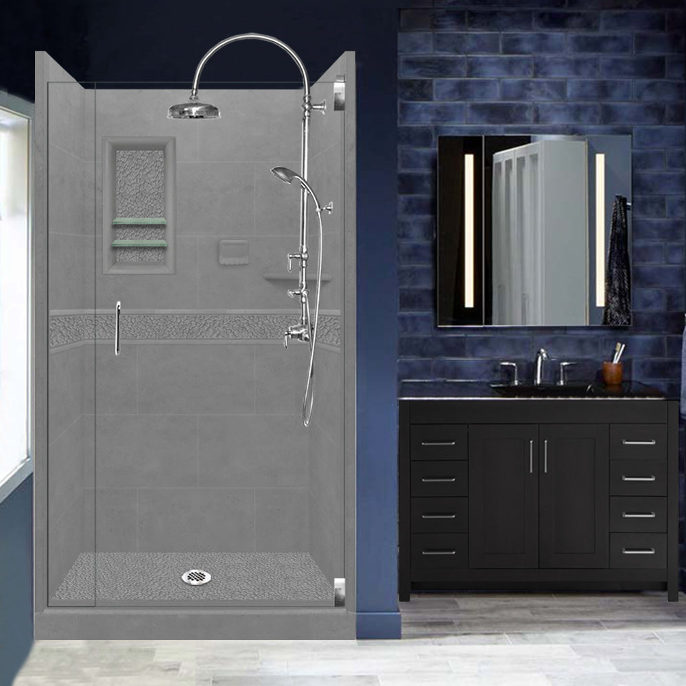 The American Bath Factory Sistine Stone shower pan and wall kit comes with a solid pre-formed shower pan and easy to install shower wall panels.