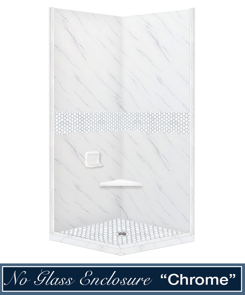 Carrara Marble Pearl Hex Mosaic Corner Shower Enclosure Kit