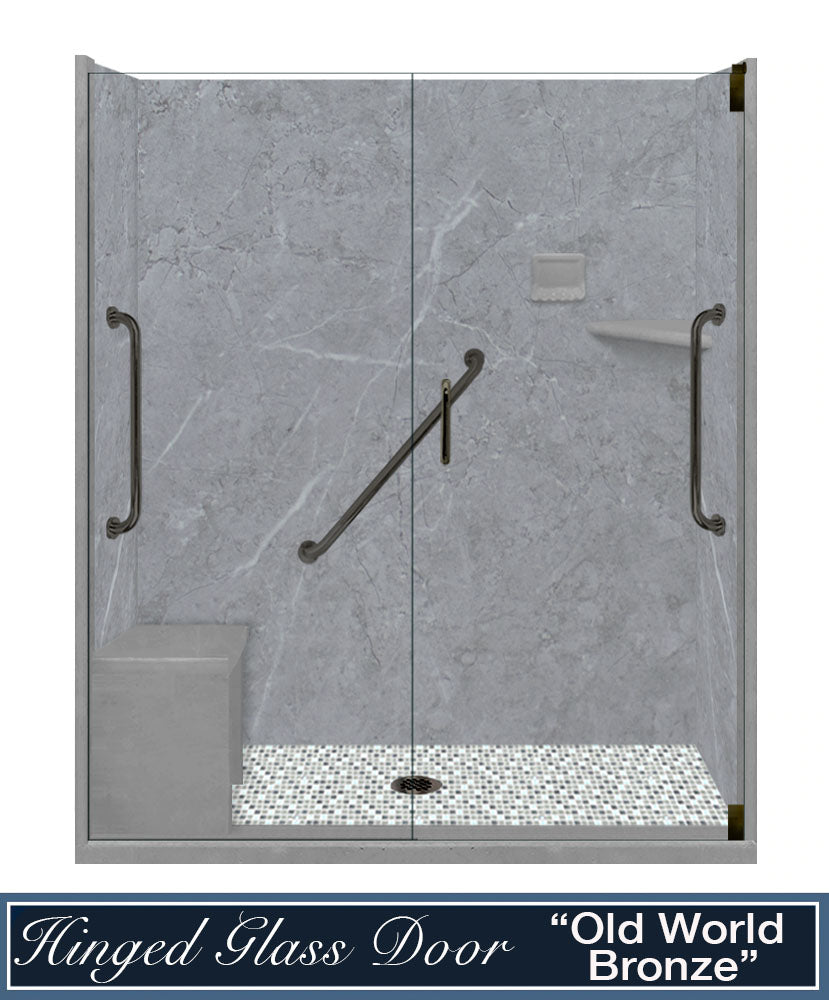 Freedom Grio Marble Del Mar Mosaic Alcove Shower Enclosure Kit