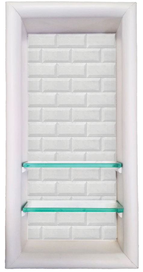 Add a beautiful Stone Vertical Shampoo Niche to your Collection of Shower kits to hold those necessities. Made out of Sistine Stone™ and featuring two Glass Shelves. The Shampoo Niche Overall Dimensions are 4" D x 12" W x 23.75 H and the inside dimensions measure 3.375" D x 9" W x 20.75" H.