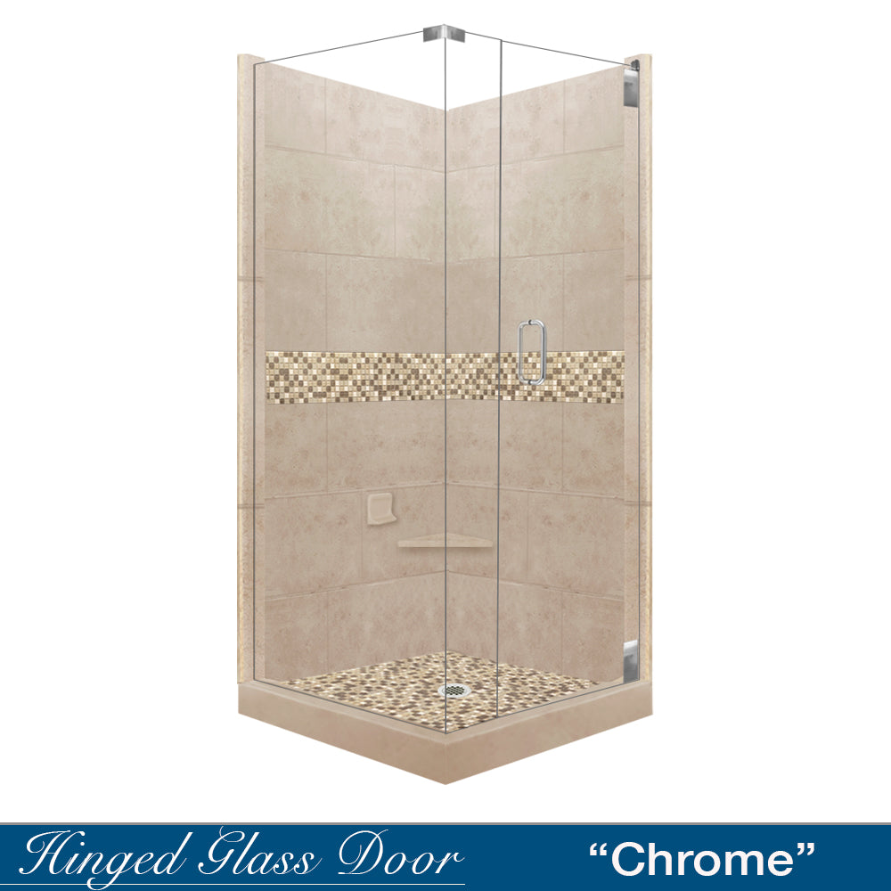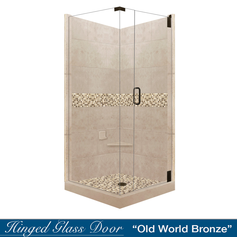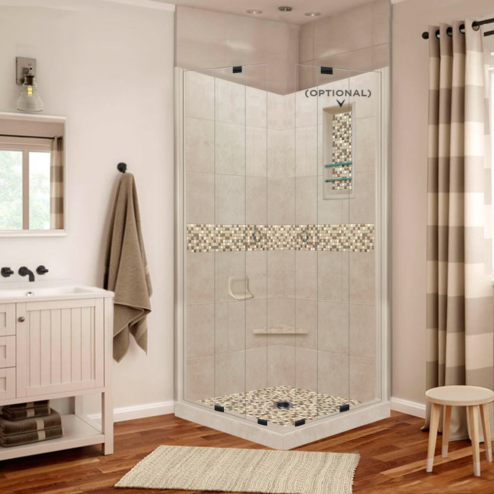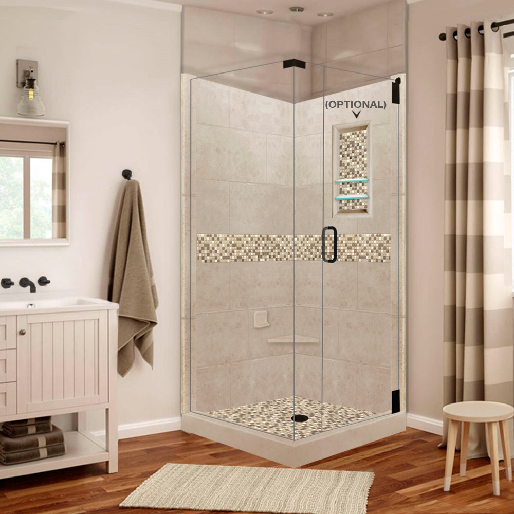 Corner Brown Sugar Sistine Stone & Roma Mosaic Accent Shower Remodel Kit