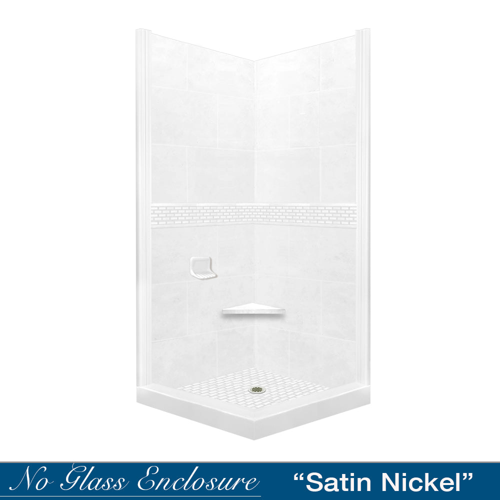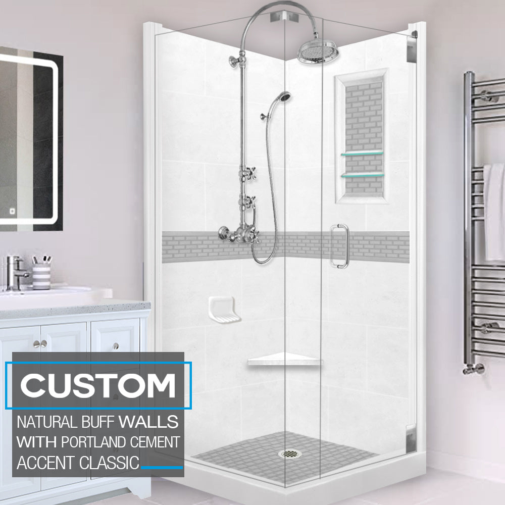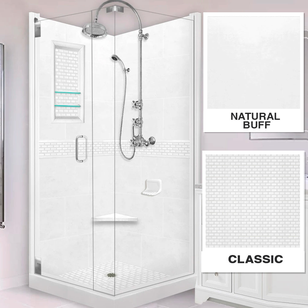 Corner Natural Buff Sistine Stone & Classic Stone Accent Shower Remodel Kit
