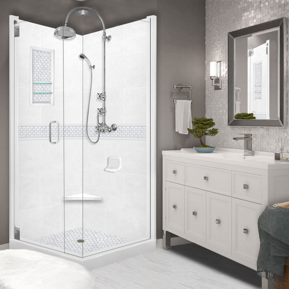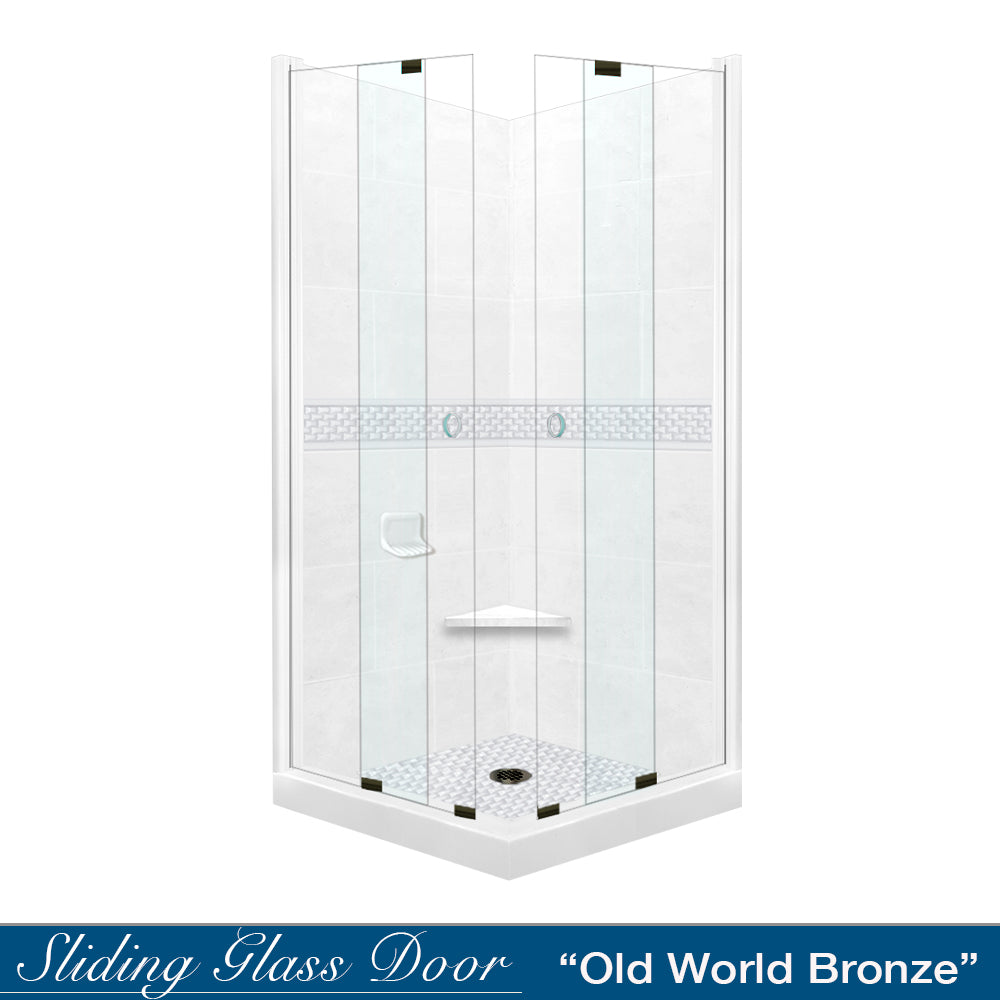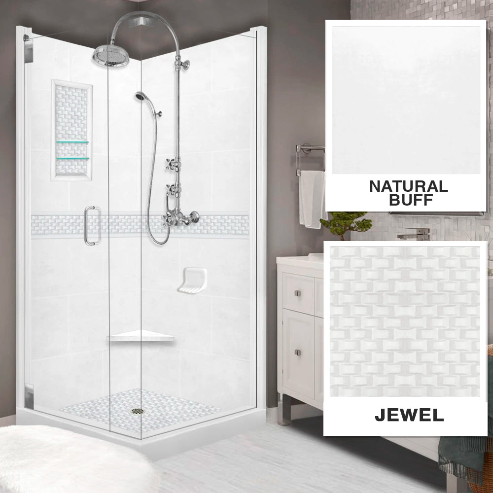 Corner Natural Buff Sistine Stone & Jewel Stone Accent Shower Remodel Kit