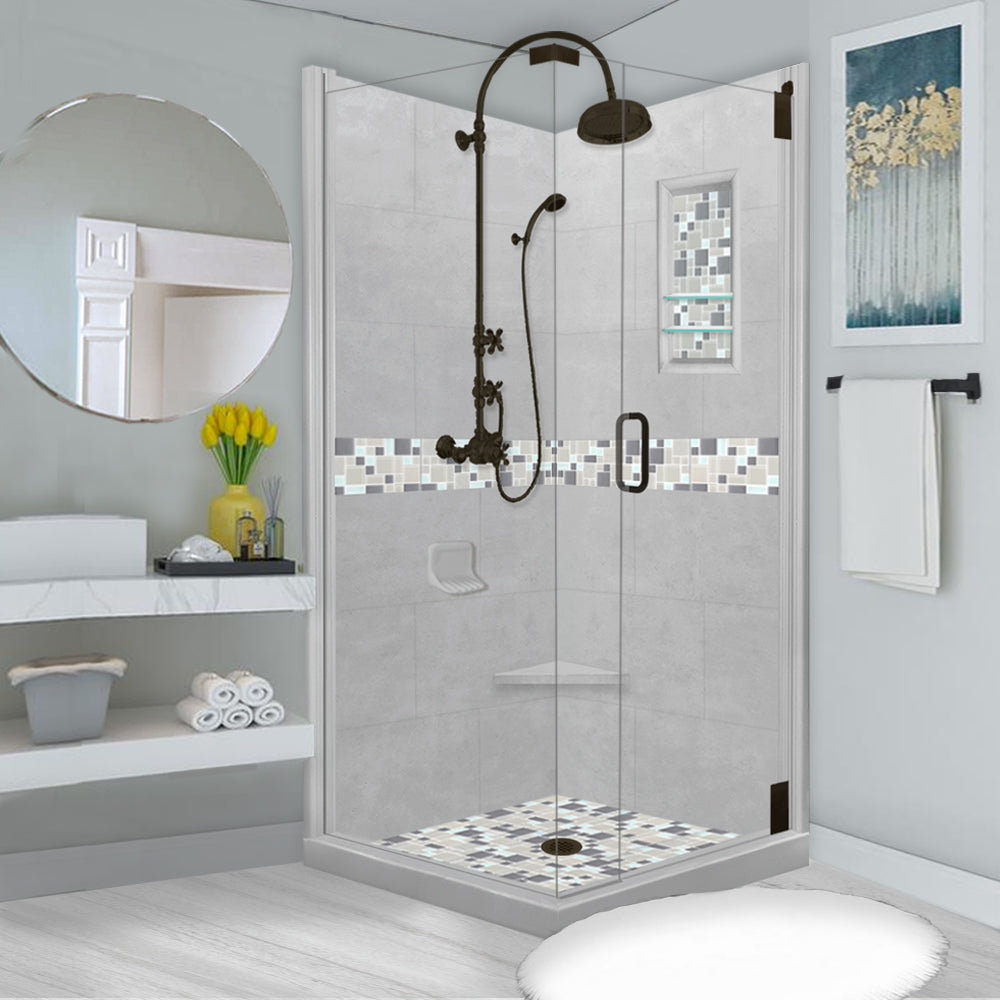 Corner Portland Cement Sistine Stone & Newport Mosaic Accent Shower Remodel Kit