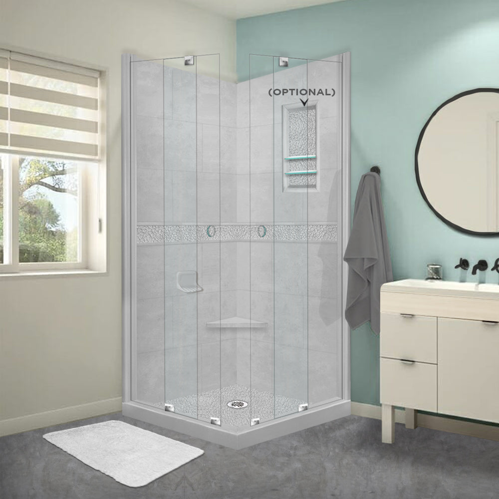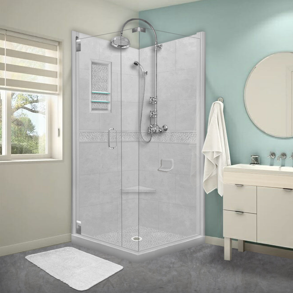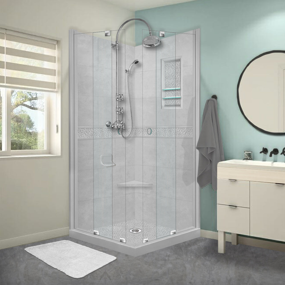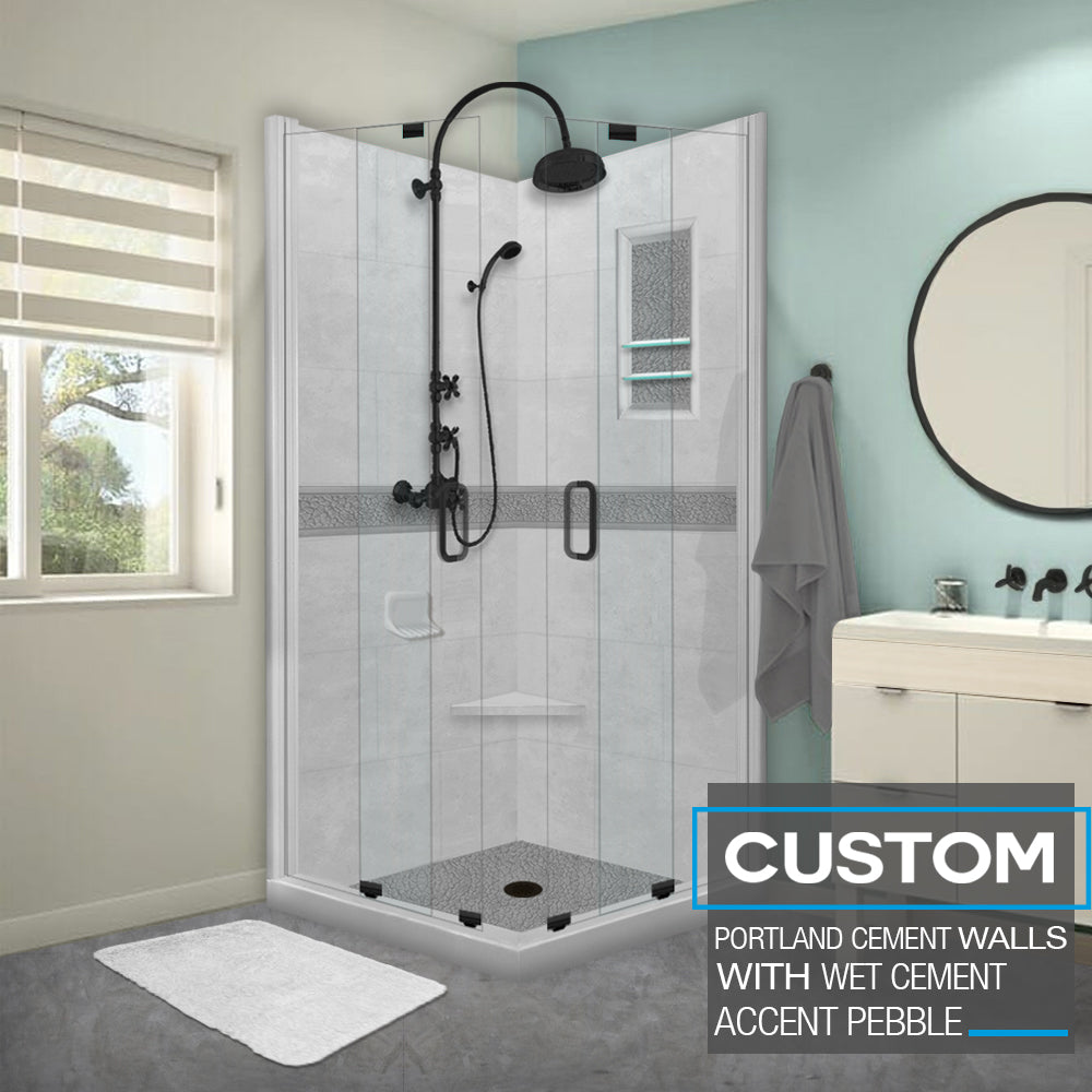 Corner Portland Cement Sistine Stone & Pebble Stone Accent Shower Remodel Kit