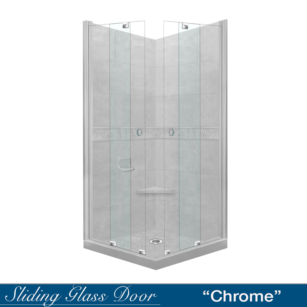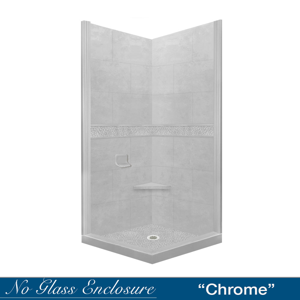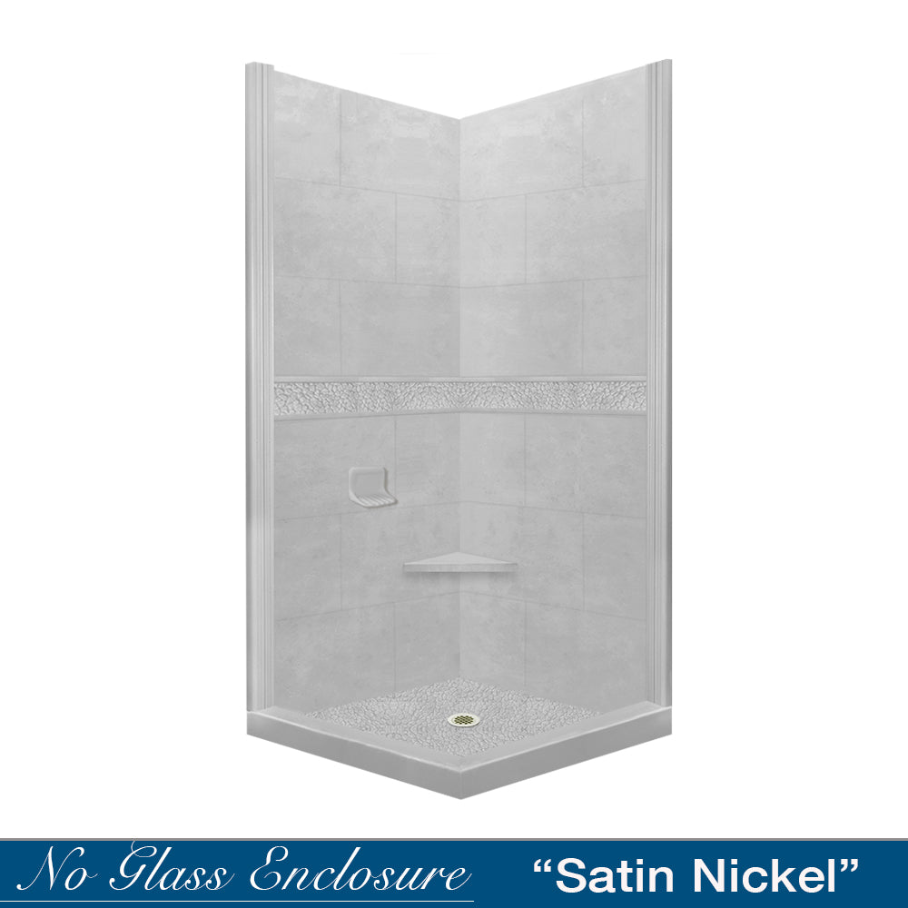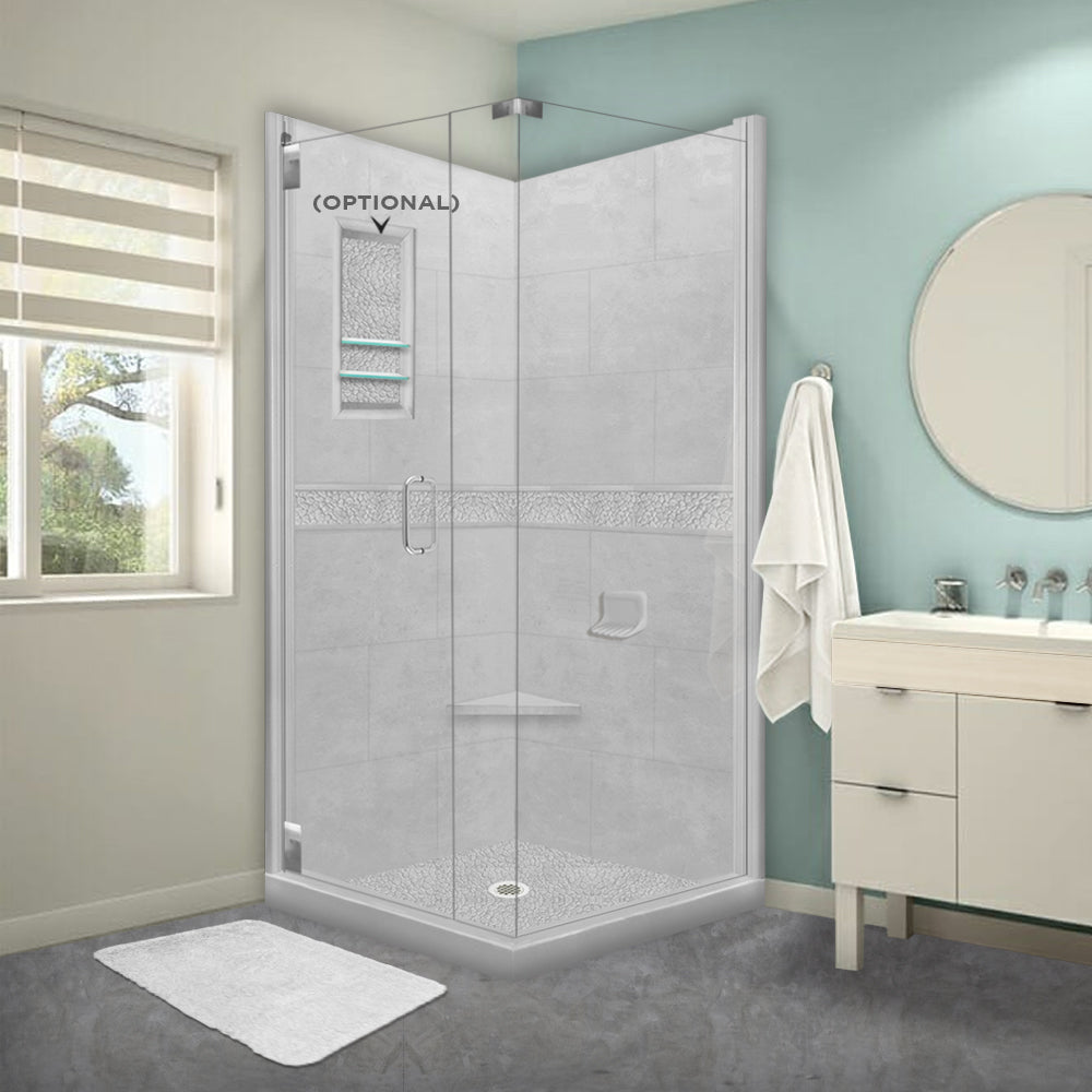 Corner Portland Cement Sistine Stone & Pebble Stone Accent Shower Remodel Kit