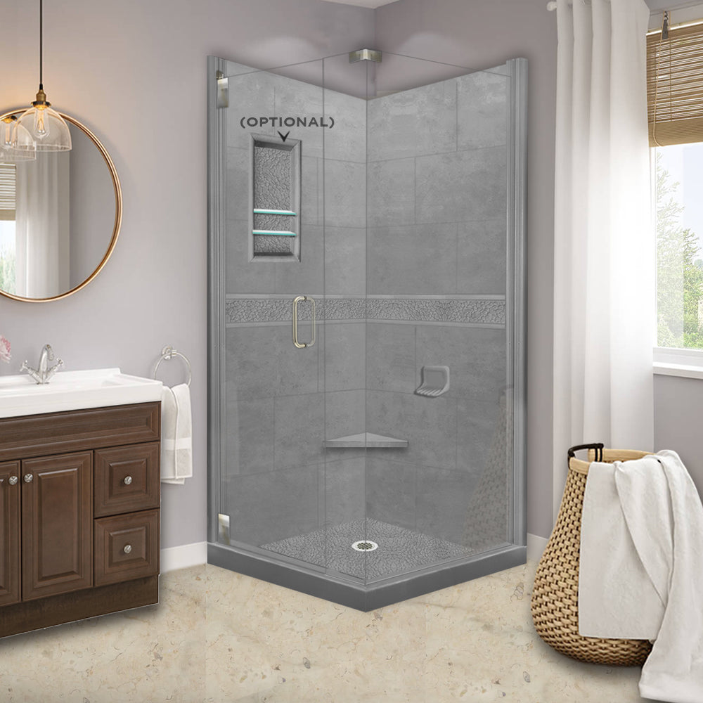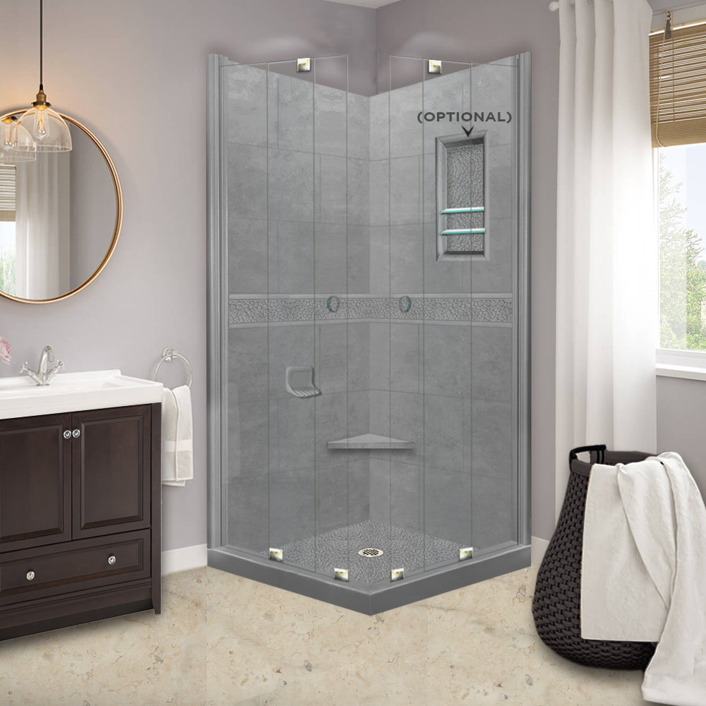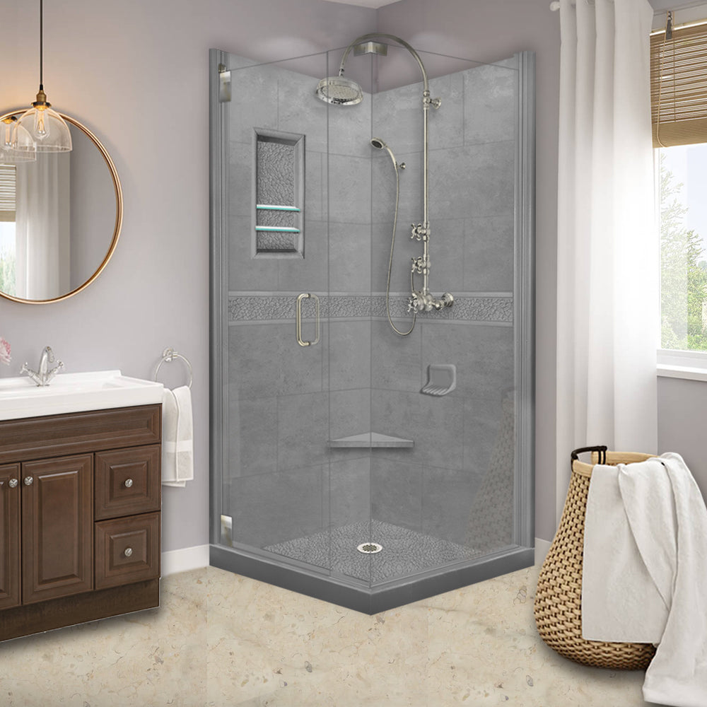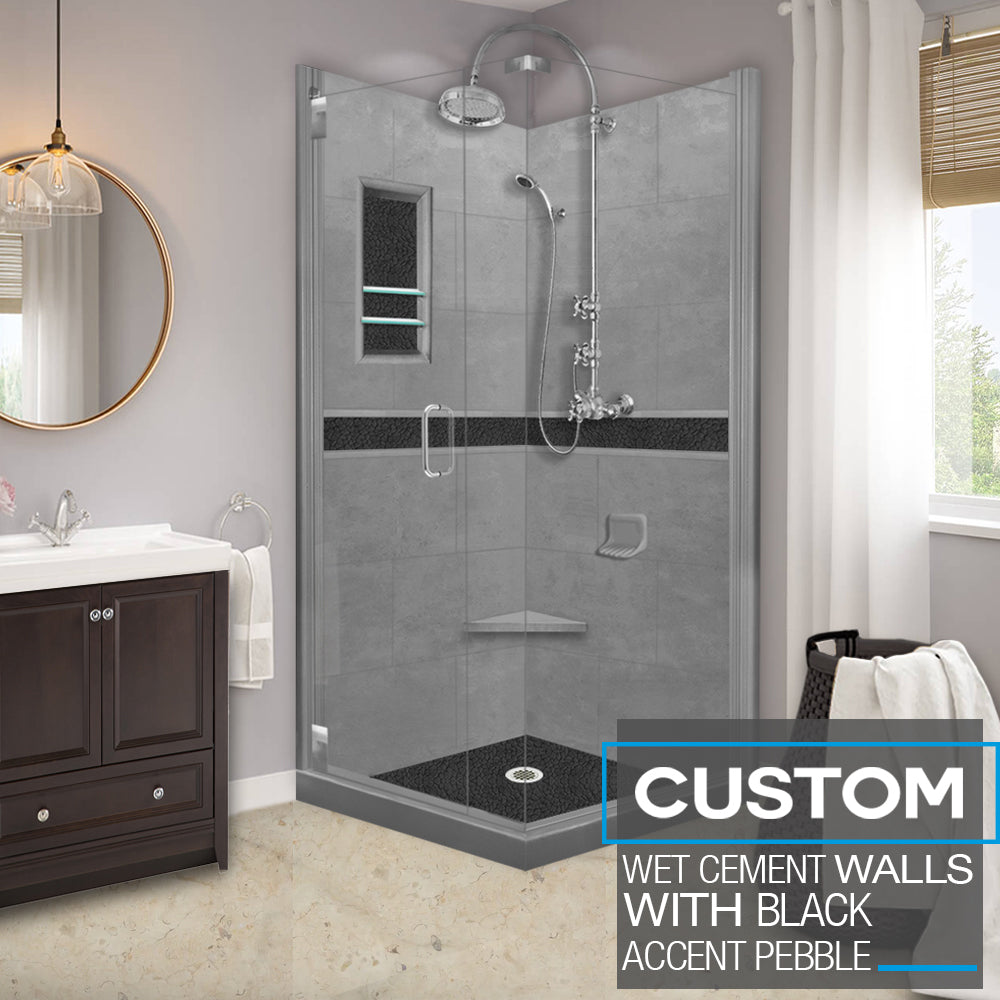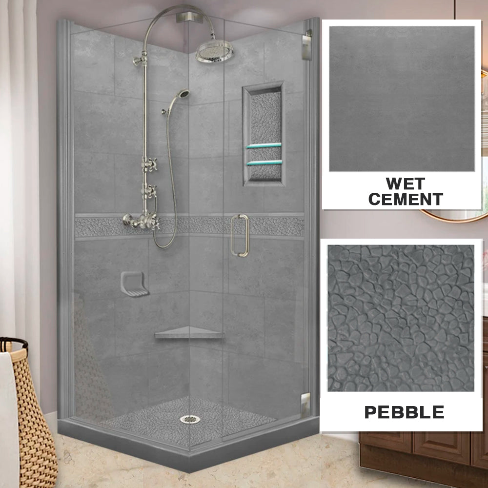 Corner Wet Cement Sistine Stone & Pebble Stone Accent Shower Remodel Kit