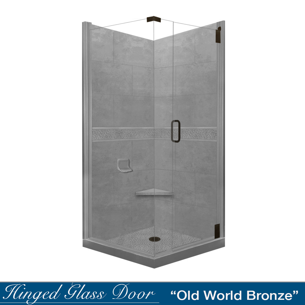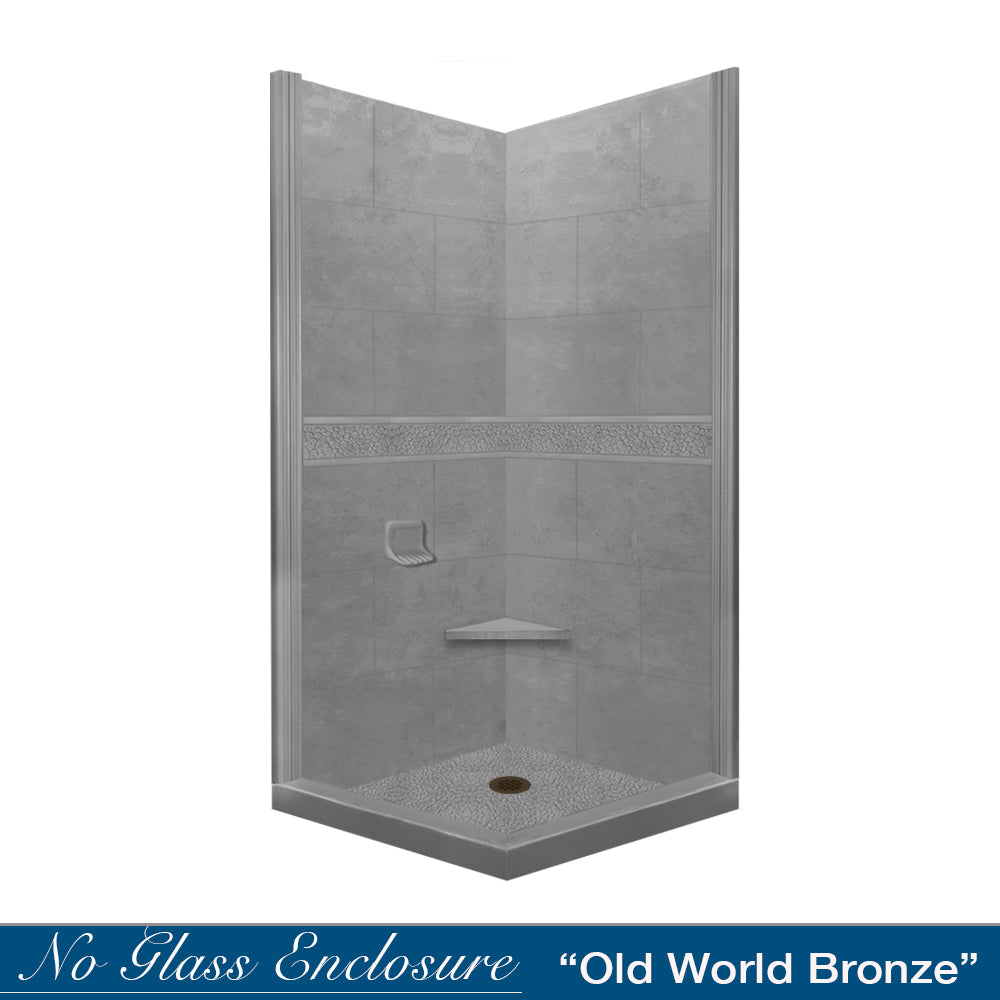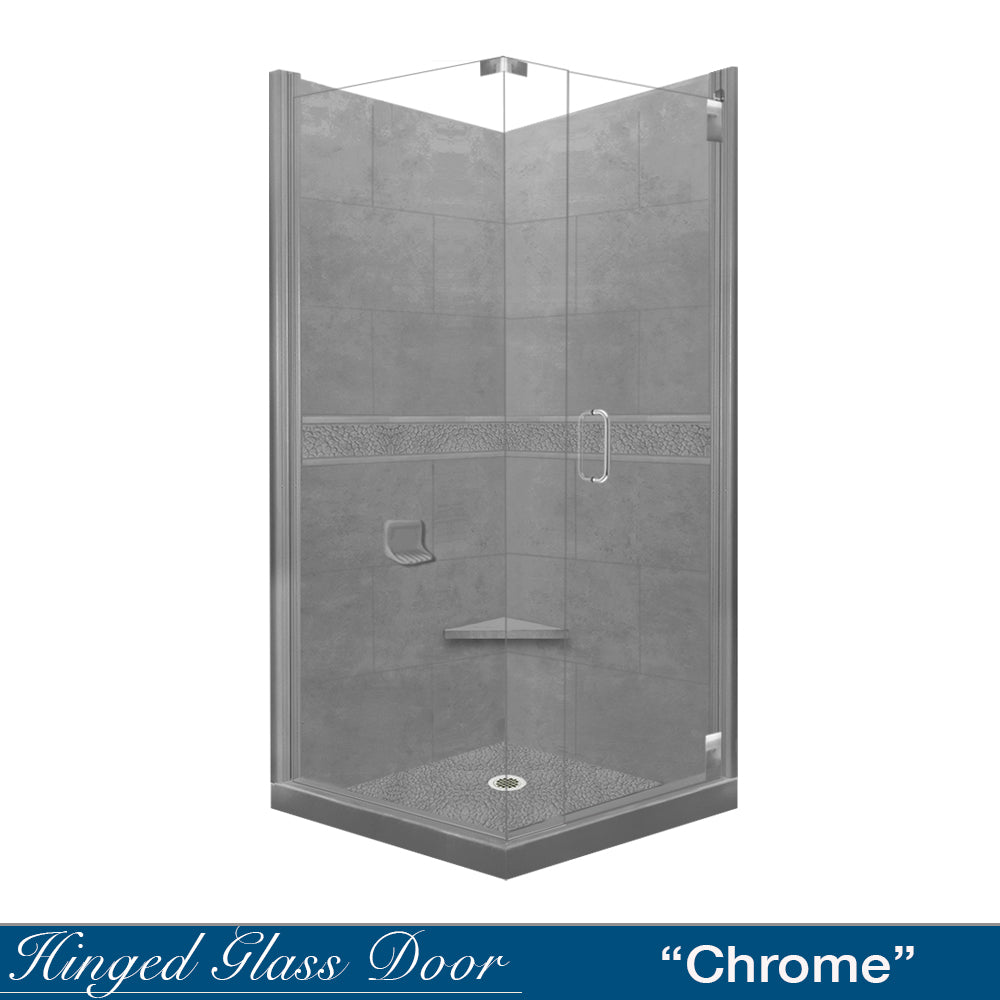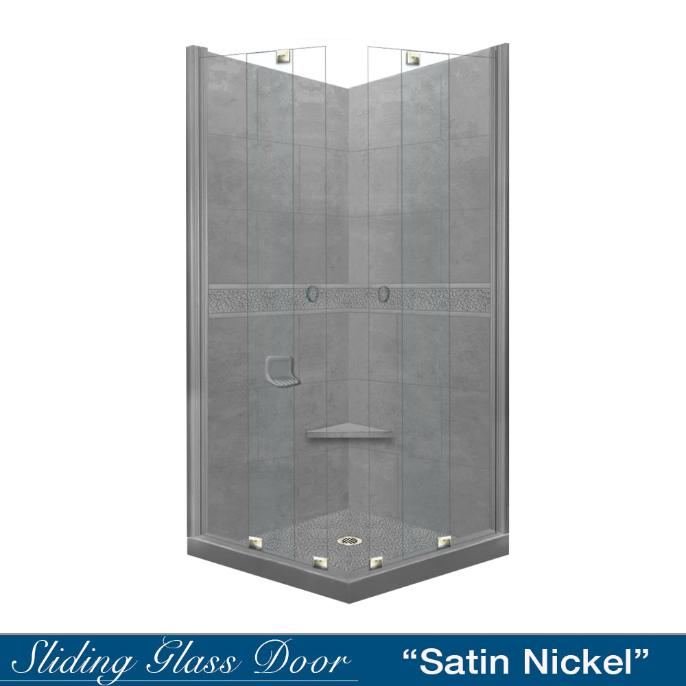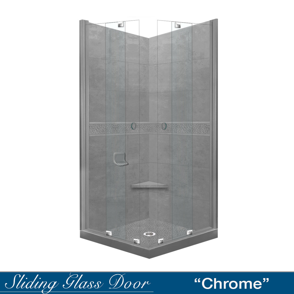 Corner Wet Cement Sistine Stone & Pebble Stone Accent Shower Remodel Kit