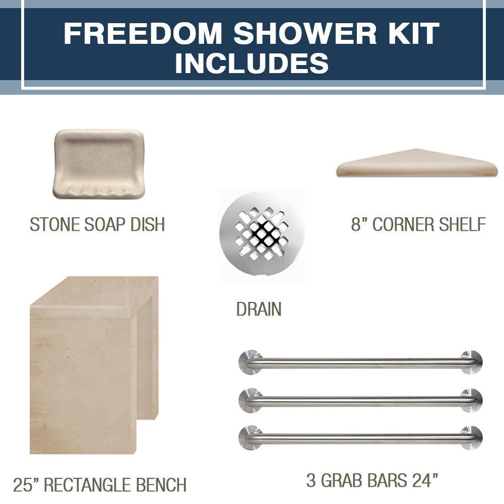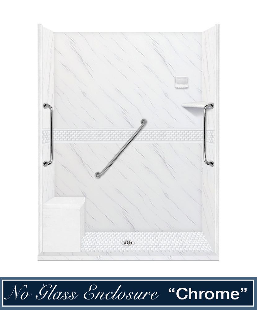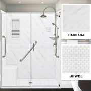 Freedom 60" Alcove Carrara Medici Marble & Jewel Stone Accent Shower Remodel Kit