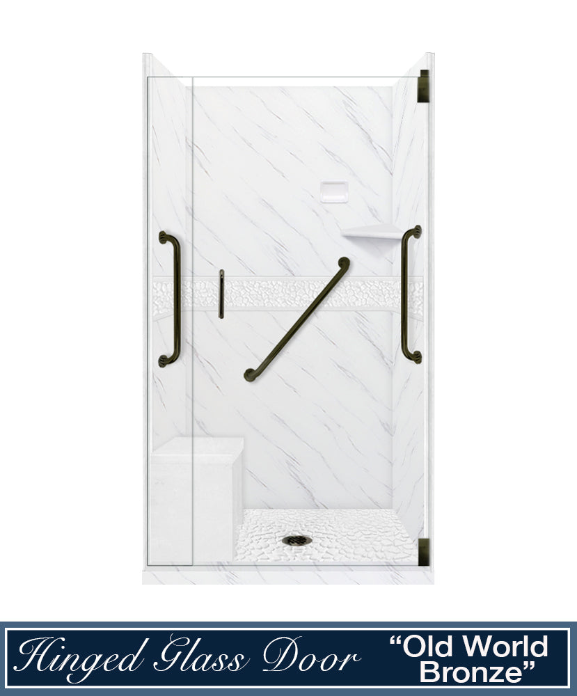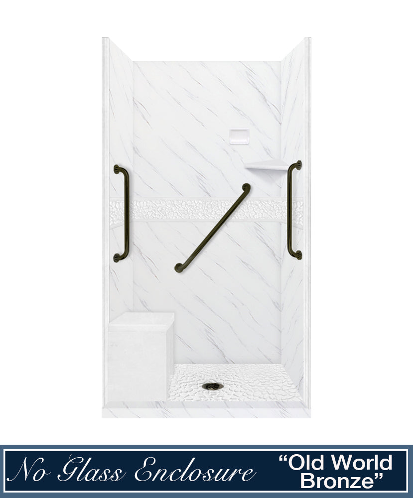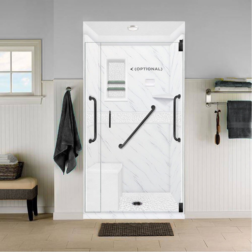 Freedom 60" Alcove Carrara Medici Marble & Pebble Stone Accent Shower Remodel Kit