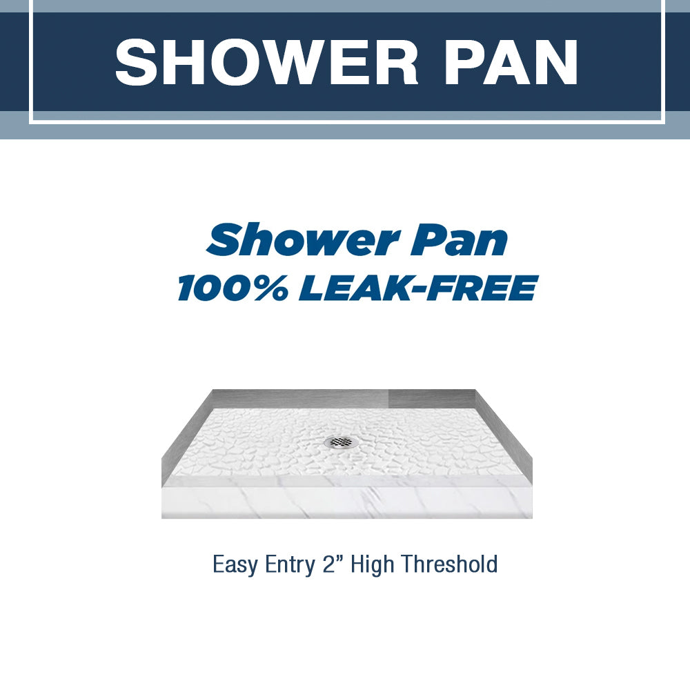 - 100% LEAK FREE Solid Stone Shower Pan.