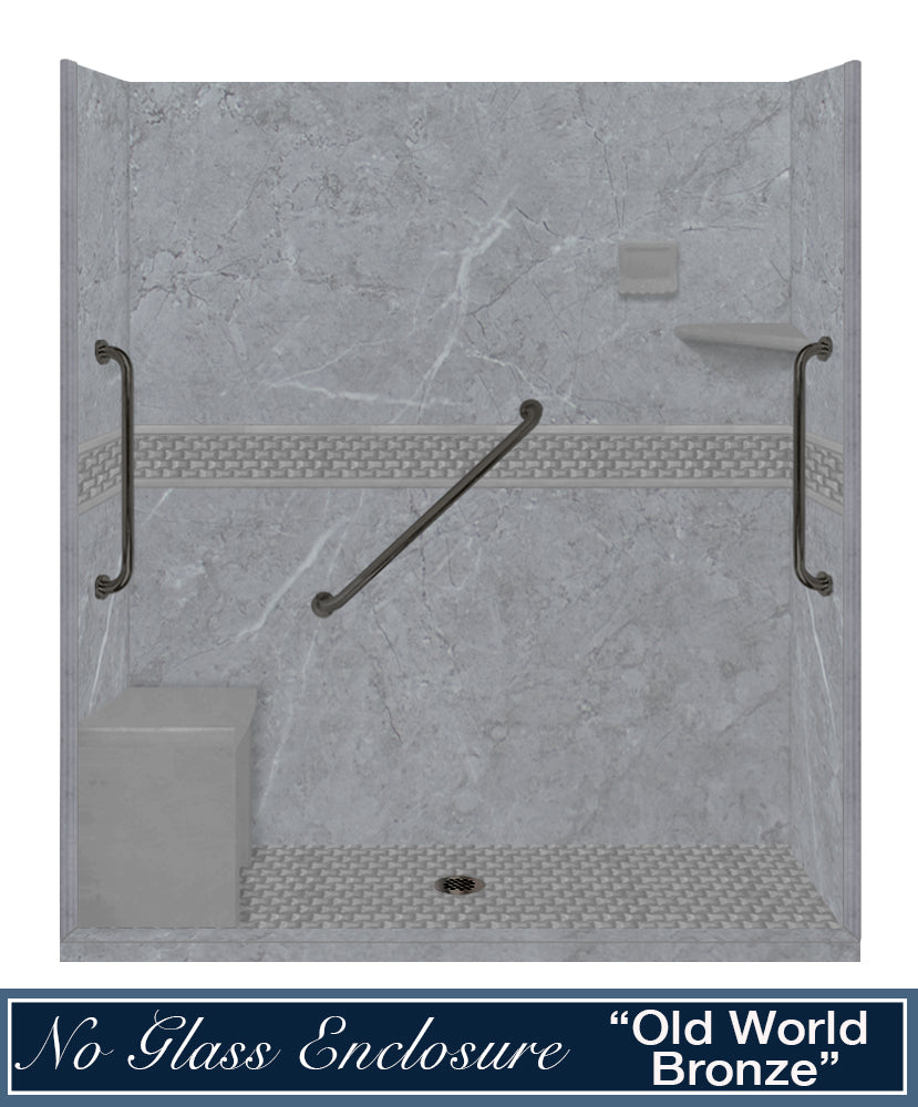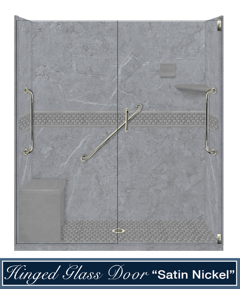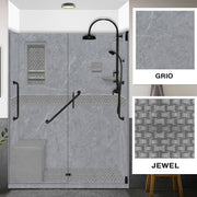 Freedom 60" Alcove Grio Medici Marble & Jewel Stone Accent Shower Remodel Kit