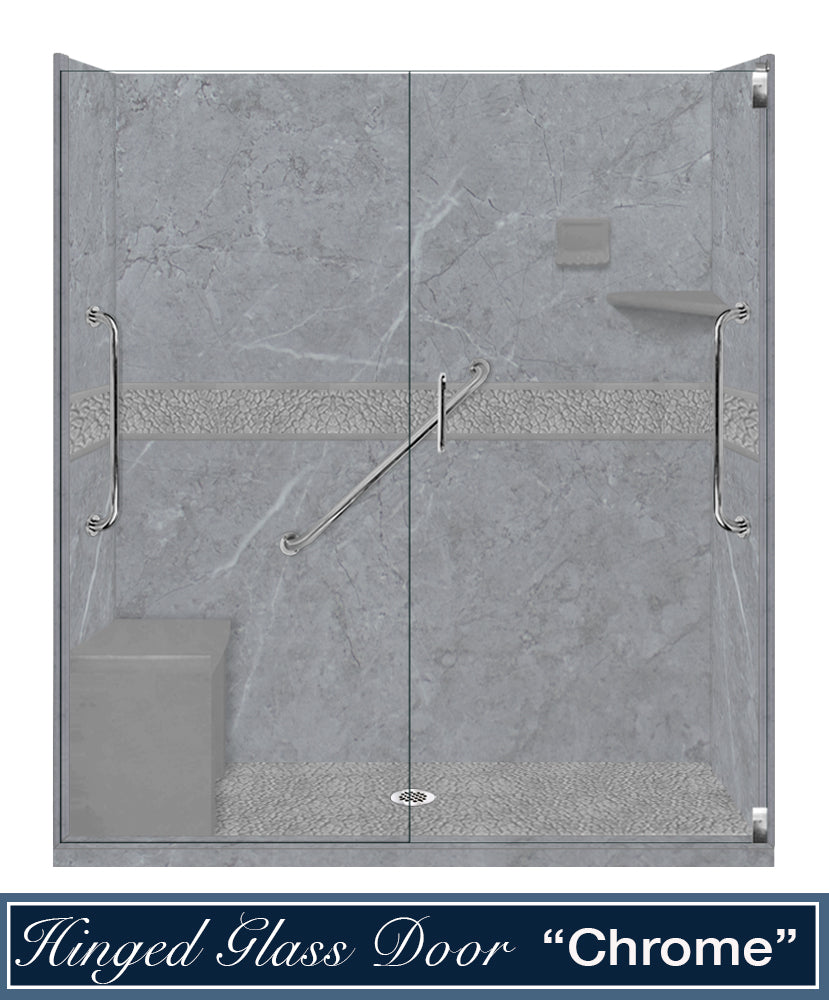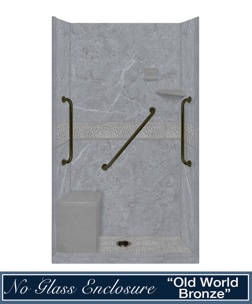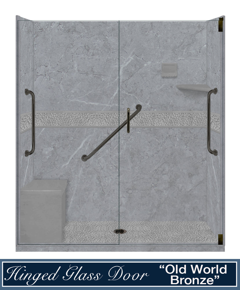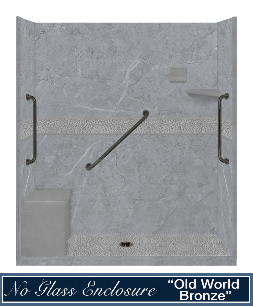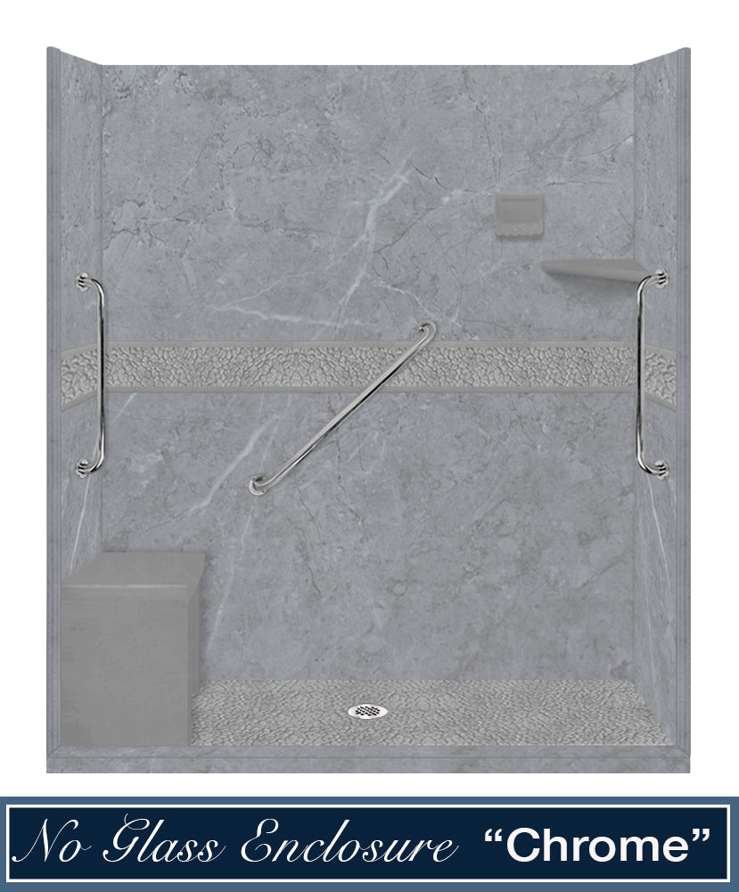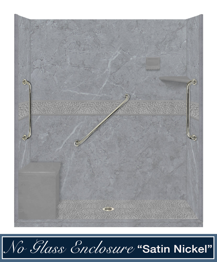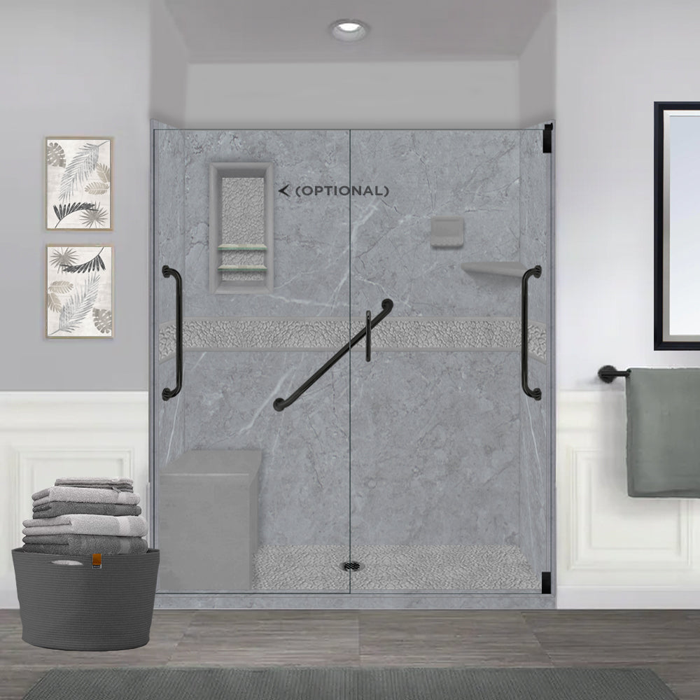Freedom 60" Alcove Grio Medici Marble & Pebble Stone Accent Shower Remodel Kit