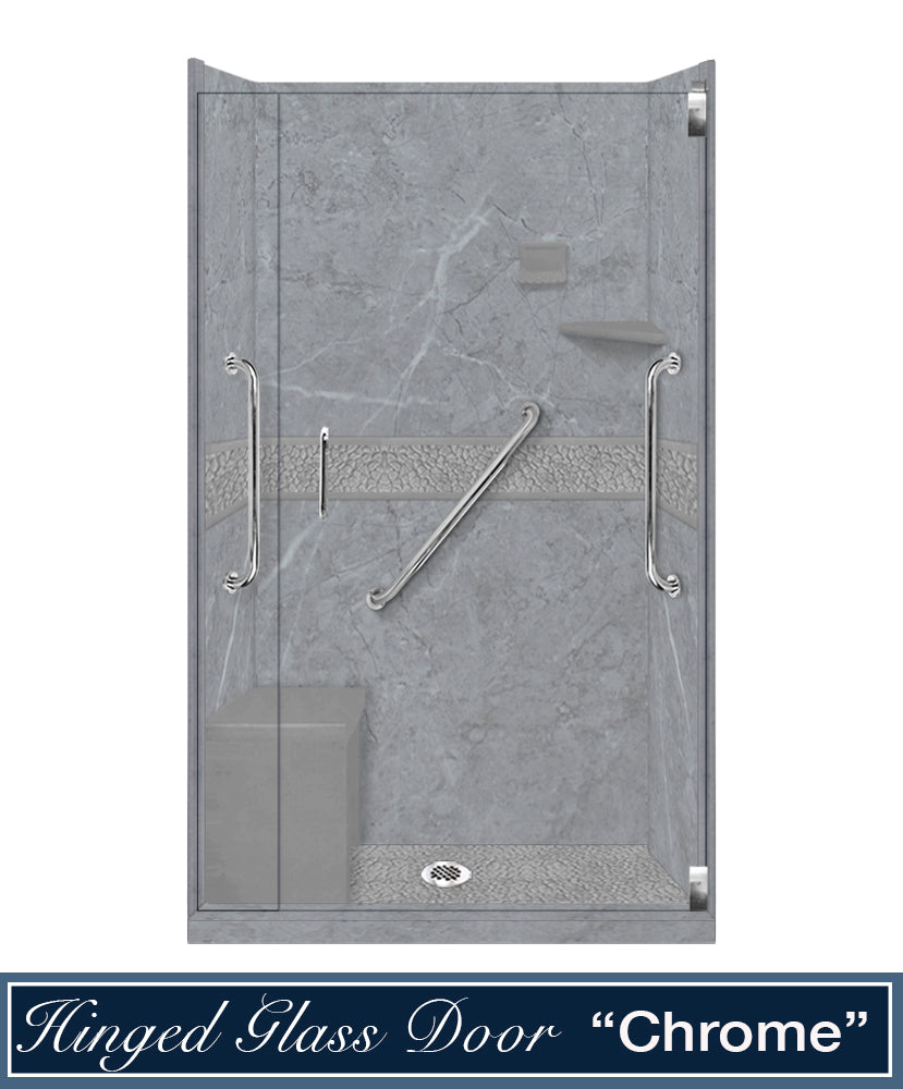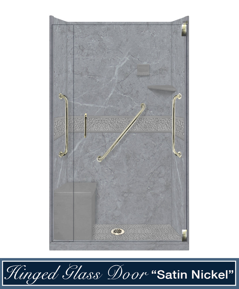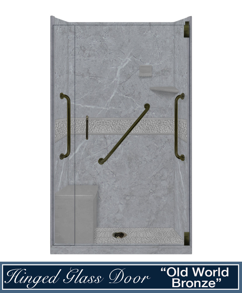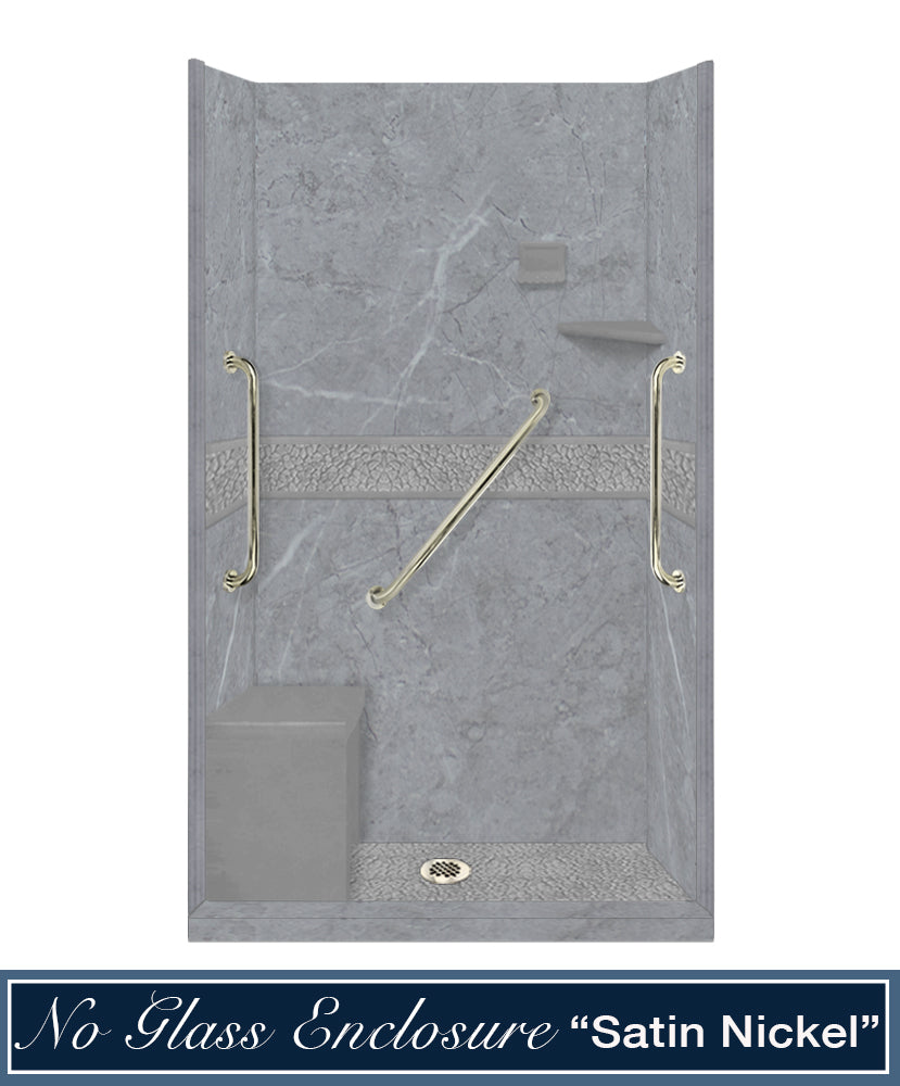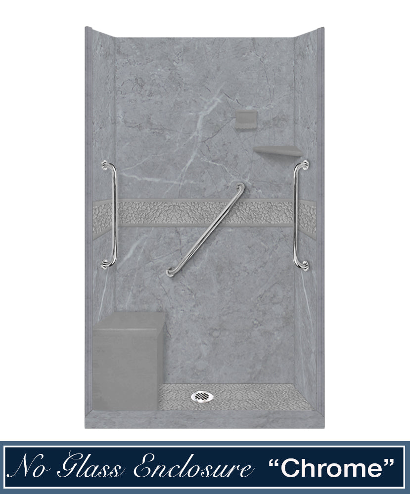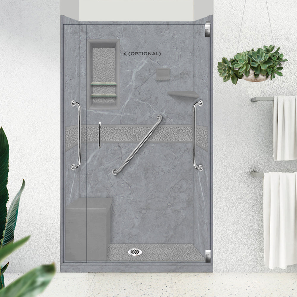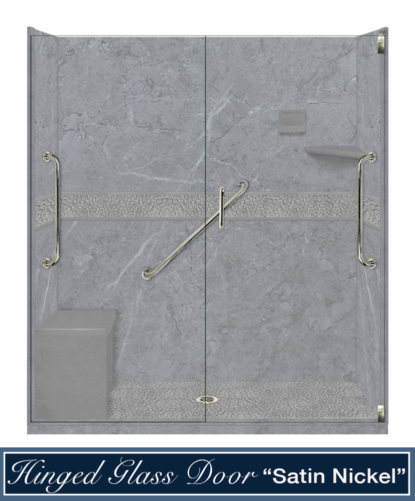 Freedom 60" Alcove Grio Medici Marble & Pebble Stone Accent Shower Remodel Kit