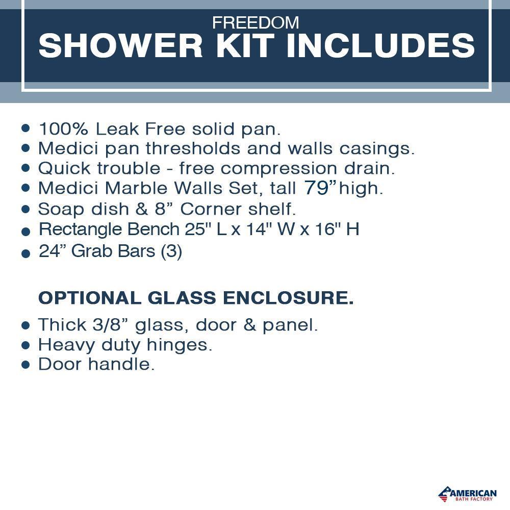 - 100% LEAK FREE Solid Stone Shower Pan.