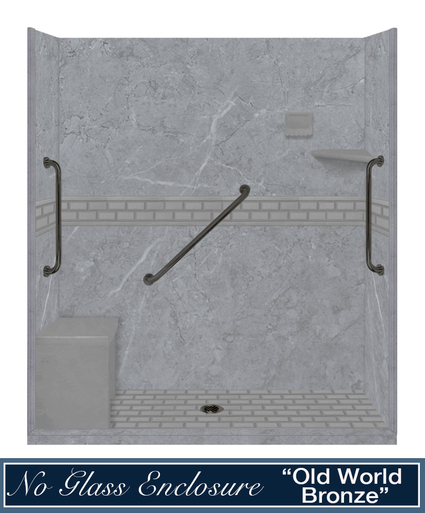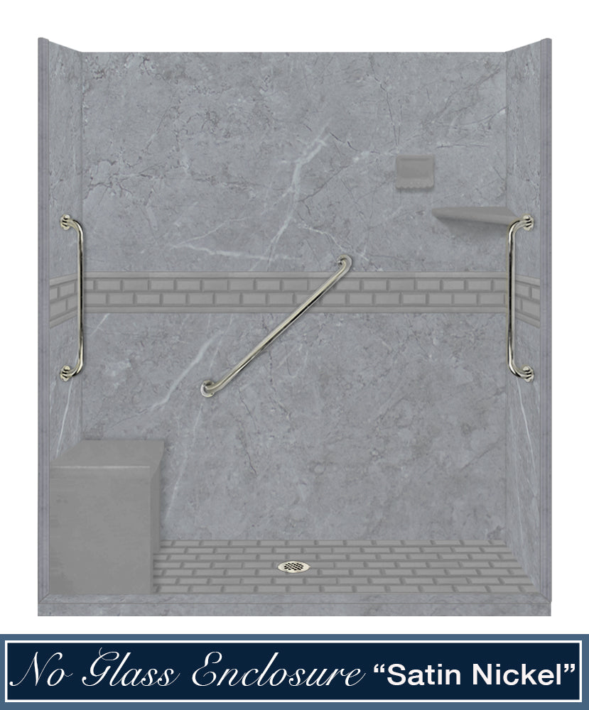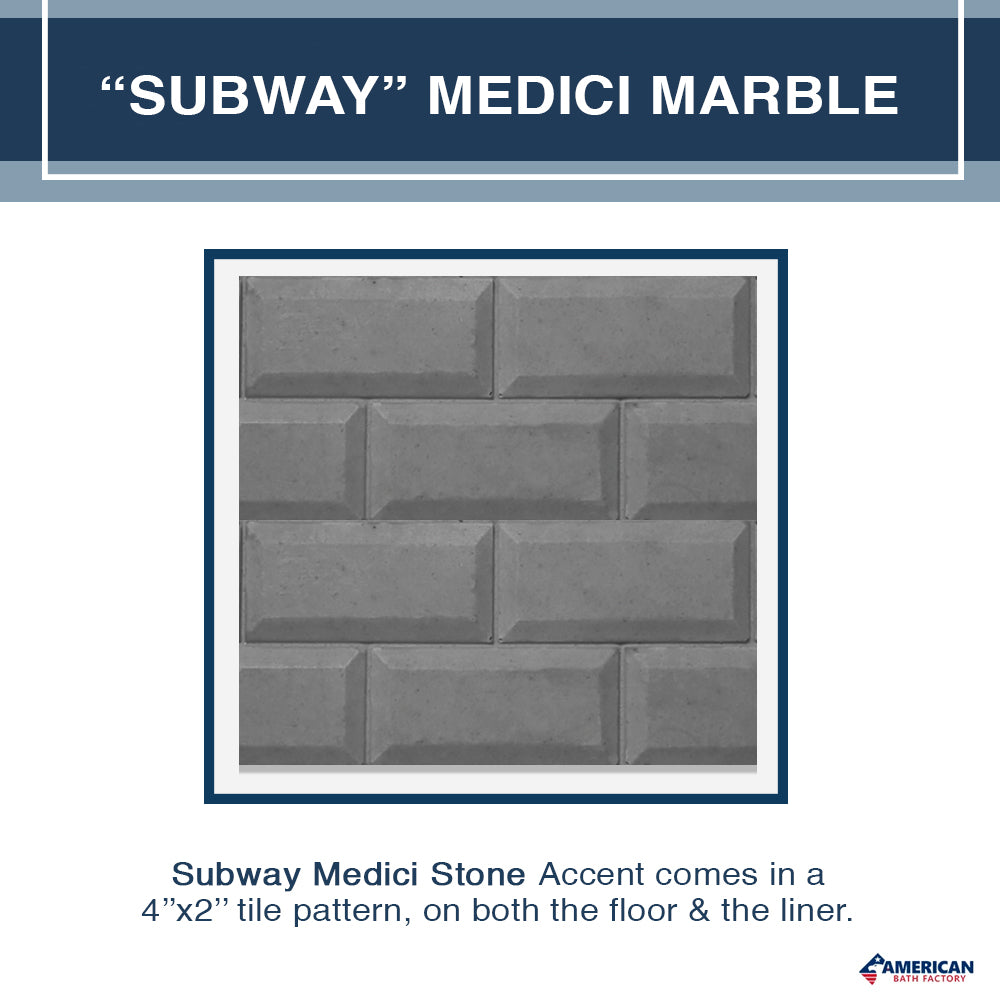 Freedom 60" Alcove Grio Medici Marble & Subway Stone Accent Shower Remodel Kit