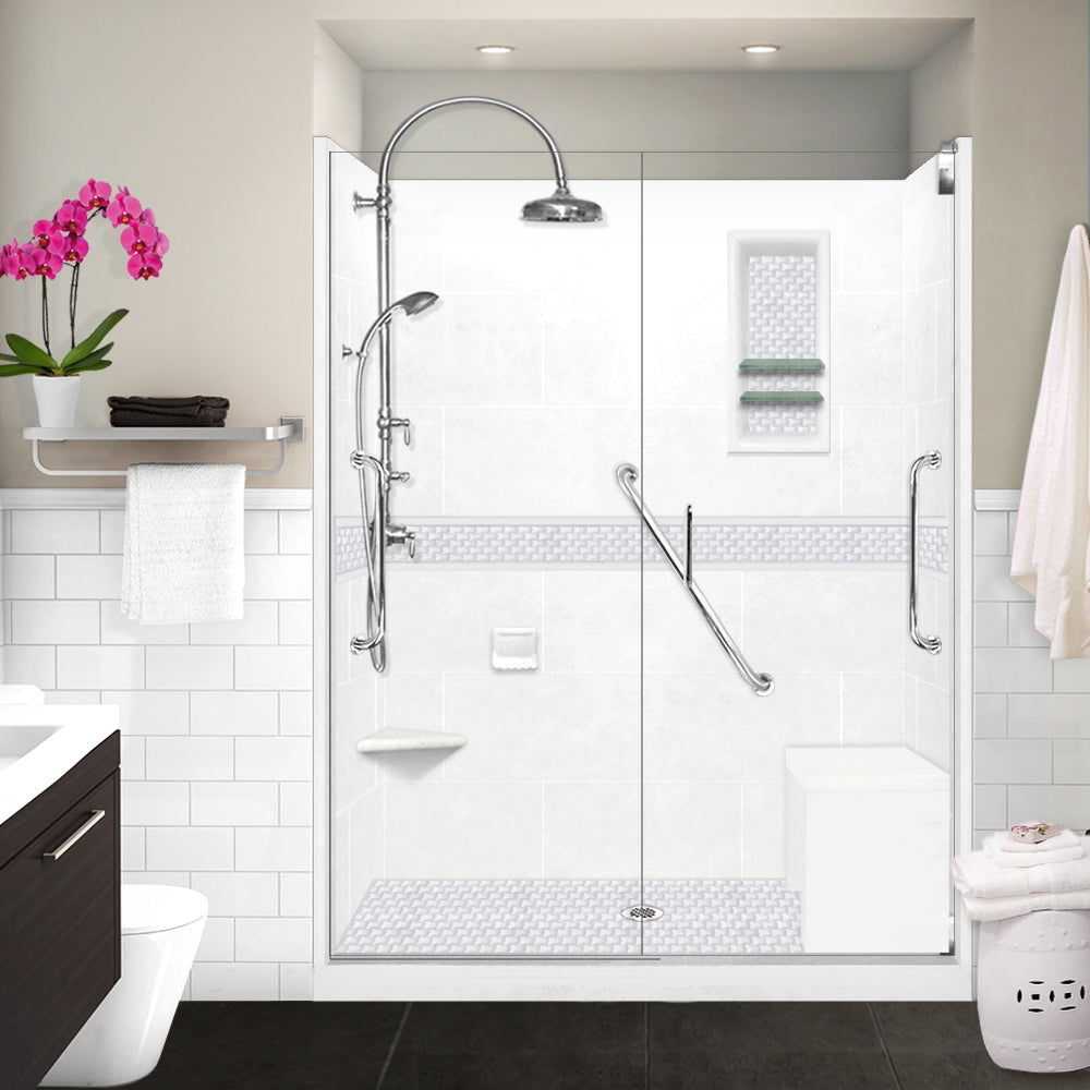 Freedom 60" Alcove Natural Buff Sistine Stone & Jewel Stone Accent Shower Remodel Kit