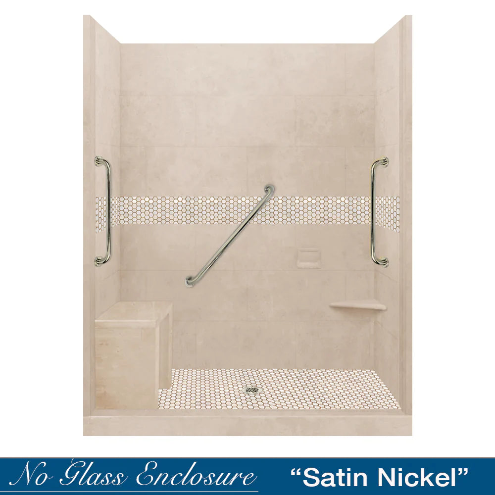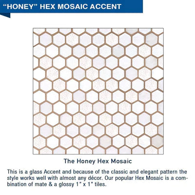 SPECIAL - 60" Alcove Desert Sand Sistine Stone & Honey Hex Mosaic Accent Shower Remodel Kit (FREE - Shampoo Niche)