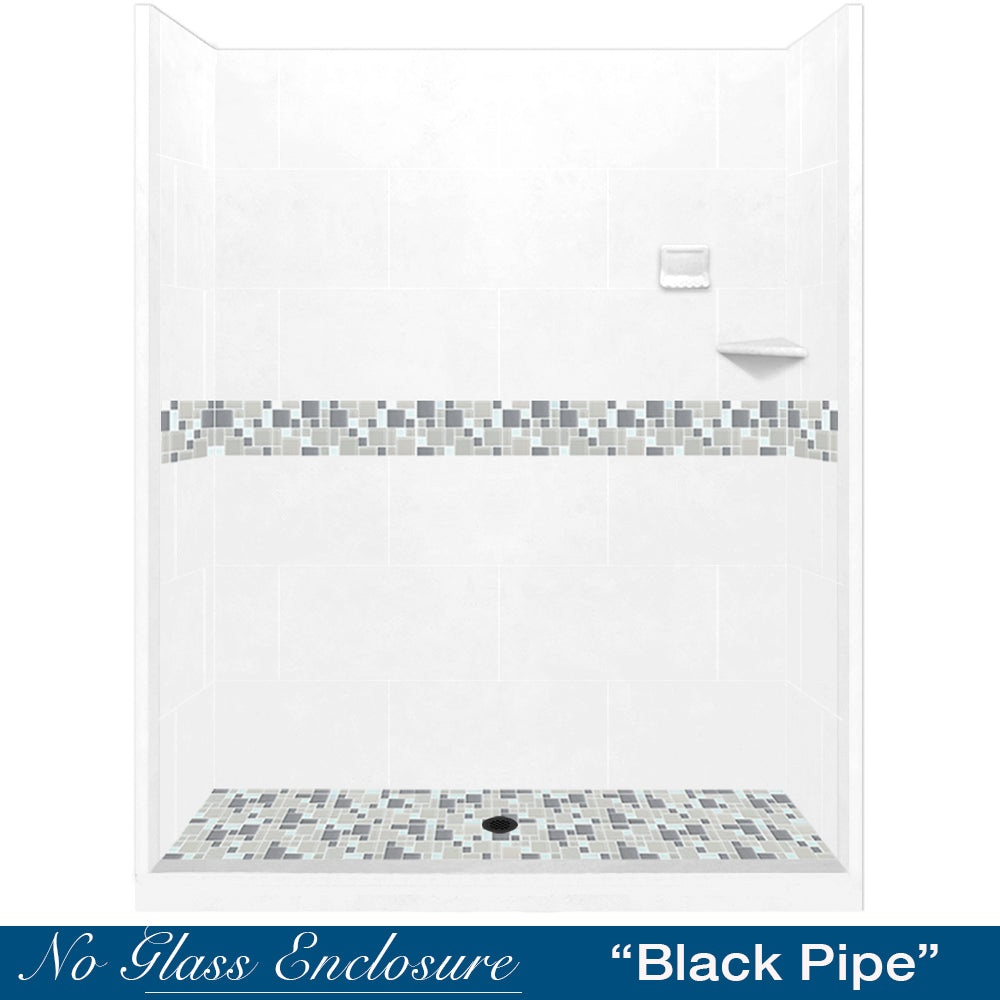 Special - 60" Alcove Natural Buff Sistine Stone & Newport Mosaic Accent Shower Remodel Kit (FREE Shampoo Niche)
