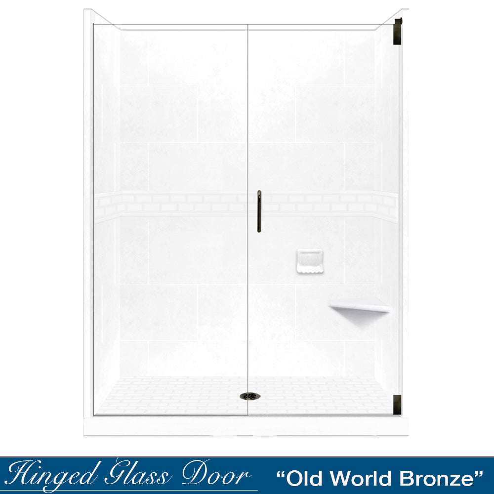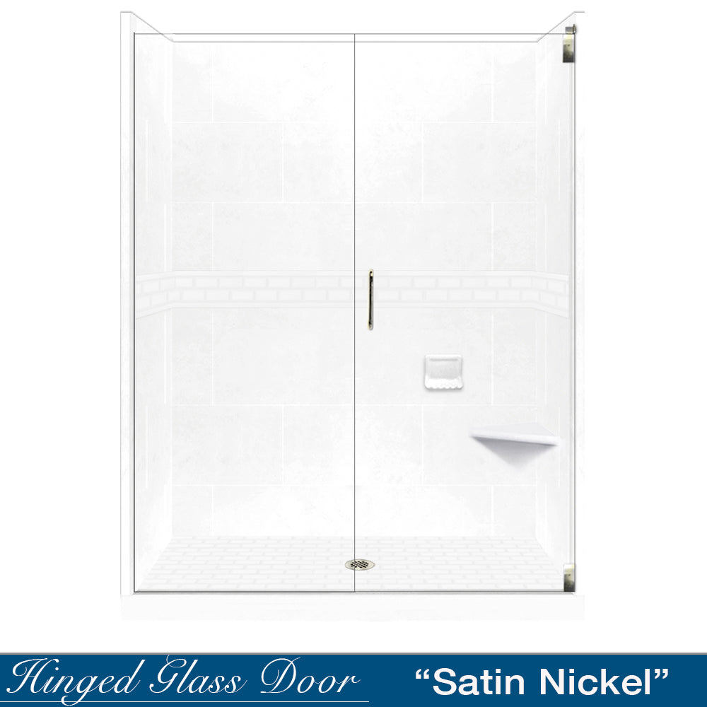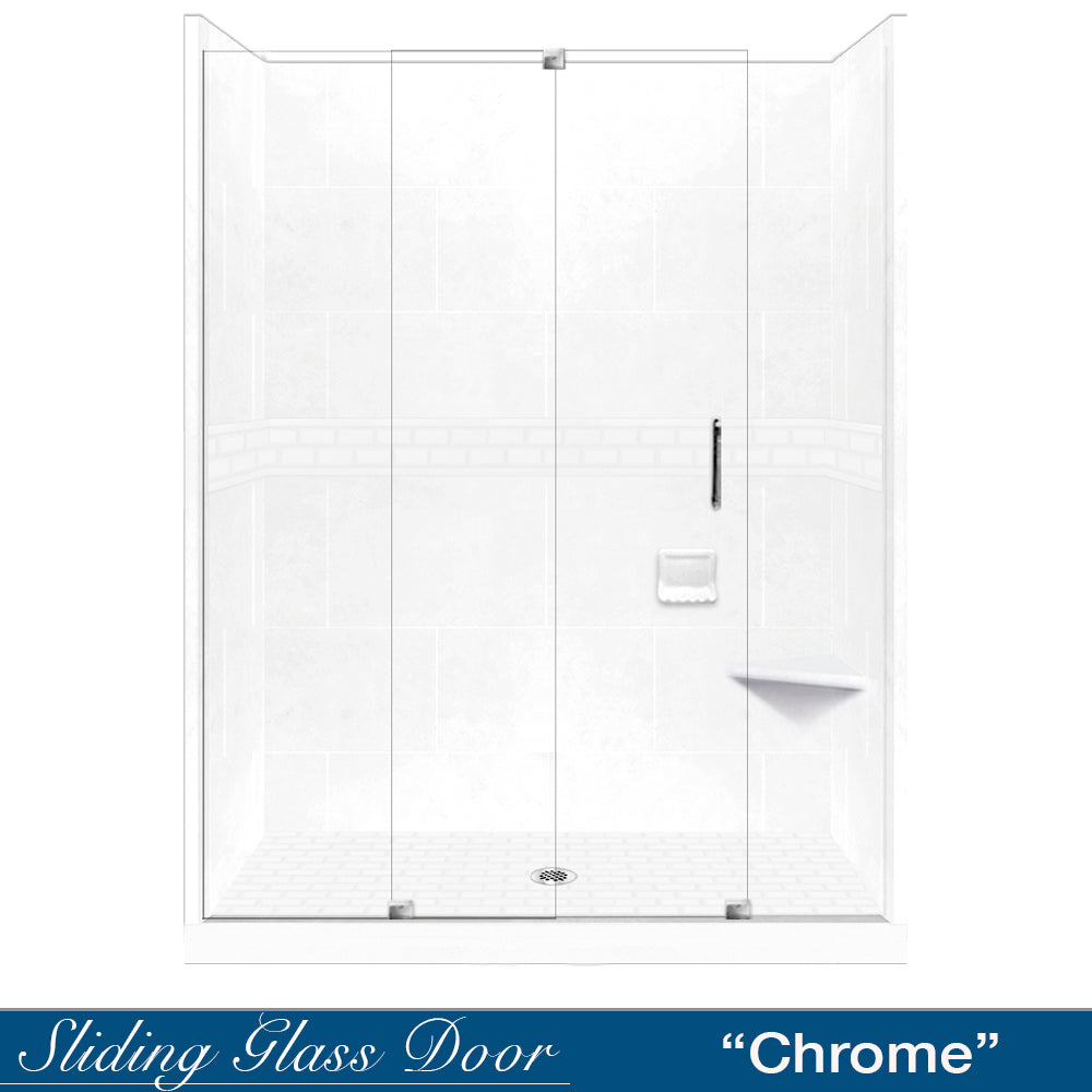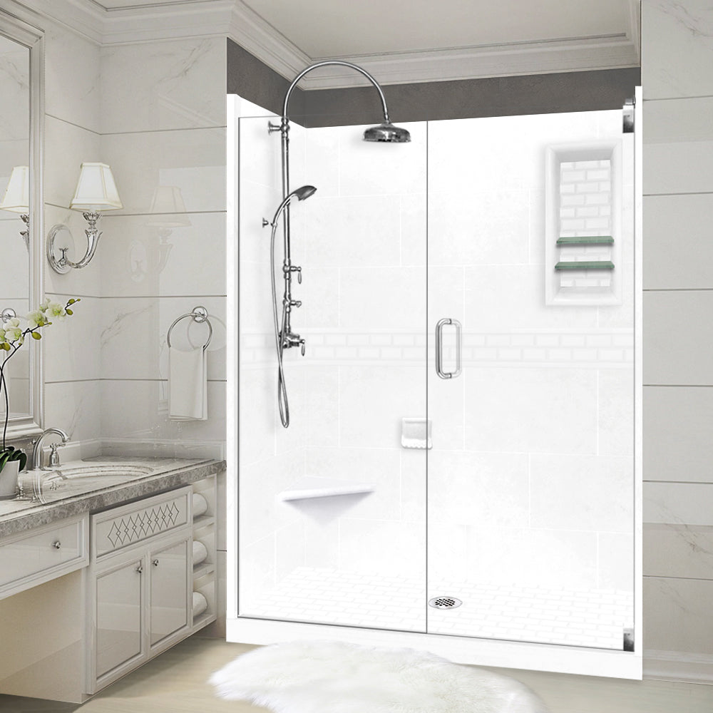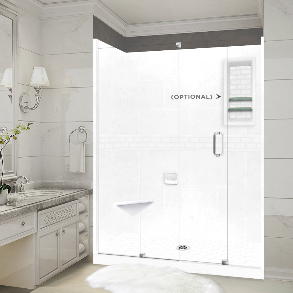 SPECIAL - 60" Alcove Natural Buff Sistine Stone & Subway Stone Accent Shower Remodel Kit (FREE Shampoo Niche)